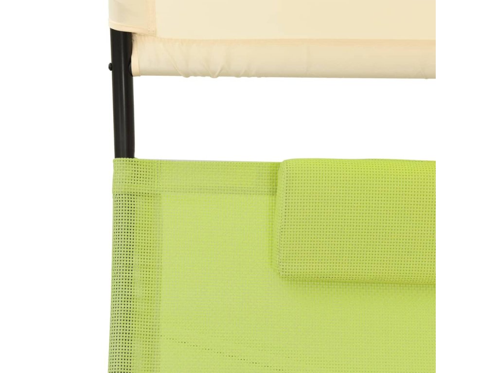 Houpací lehátko má robustní ocelový rám, který zajišťuje jeho spolehlivou stabilitu a dlouhou životnost. Výplň je ušitá ze silné a prodyšné textilenové tkaniny, takže vám při odpočinku poskytne maximální pohodlí. Dva malé polštářky, které jsou součástí balení, váš komfort ještě umocní. Baldachýn vás navíc chrání před škodlivými UV paprsky.