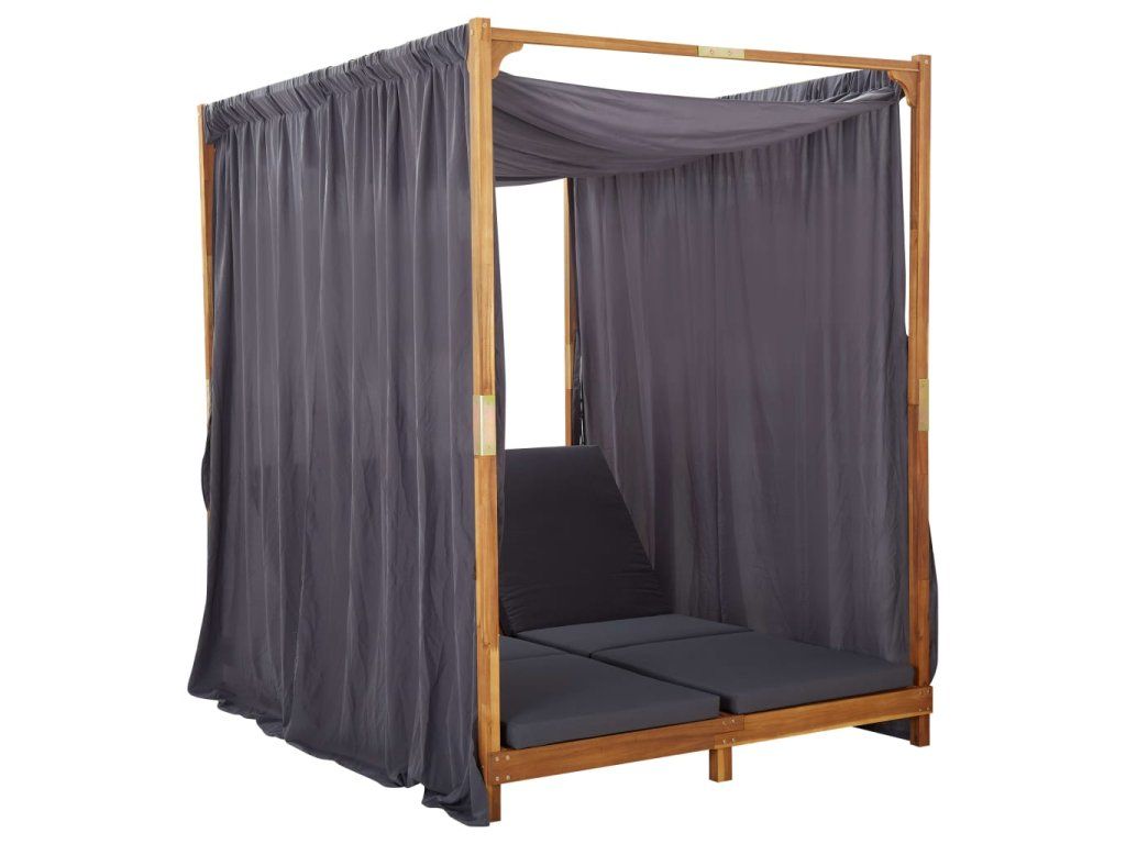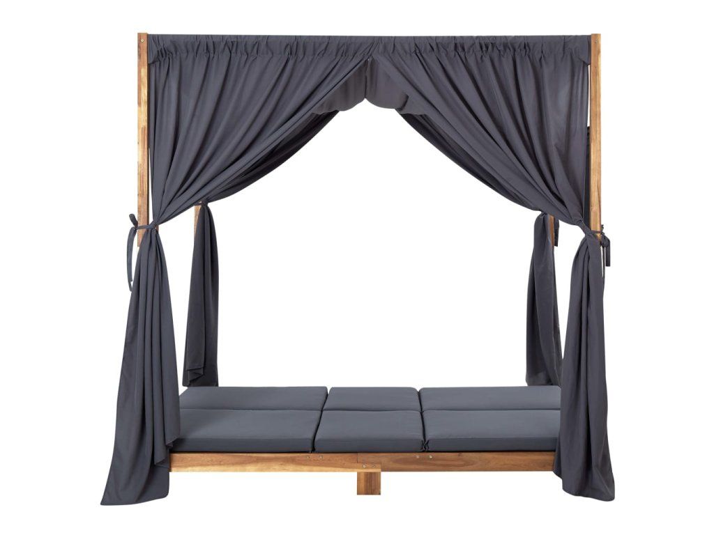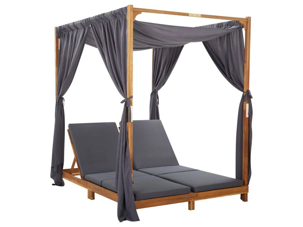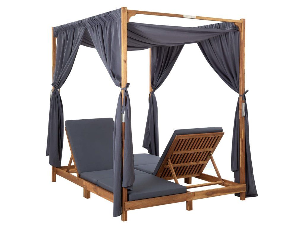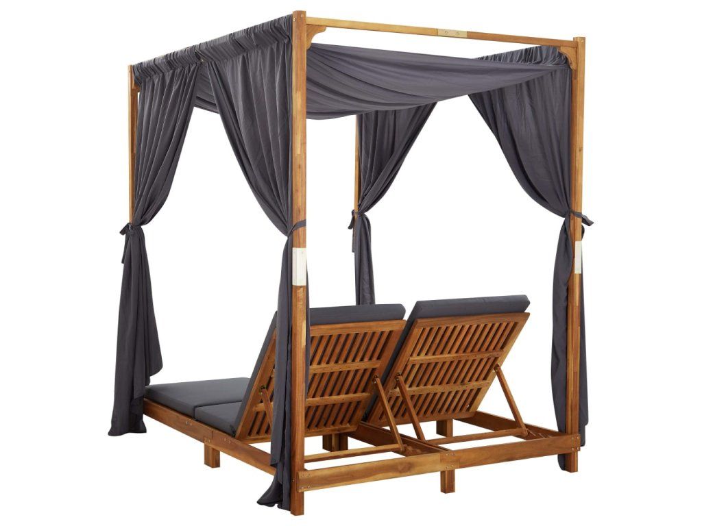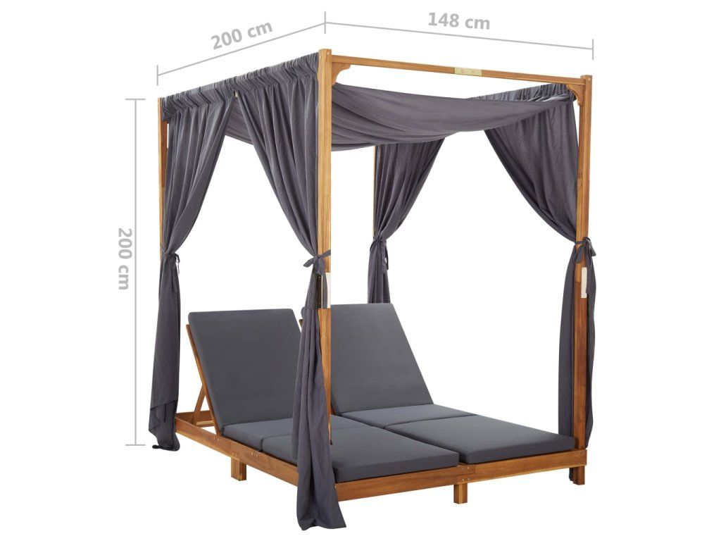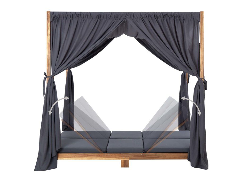 Zahradní lehátko má odolnou konstrukci z masivního akáciového dřeva, a proto je stabilní a má dlouhou životnost. Jak opěradlo, tak podnožku si můžete nastavit podle vašeho pohodlí a požadované polohy. Tlusté a odnímatelné podušky přispívají k pohodlí při sezení a ležení. Polyesterové závěsy vás ochrání před slunečním zářením, zatímco si čtete nebo odpočíváte za horkých letních dnů.