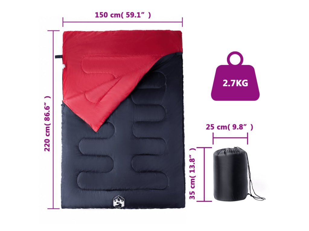- Rozměry spacího pytle: 220 x 150 cm (D x Š)