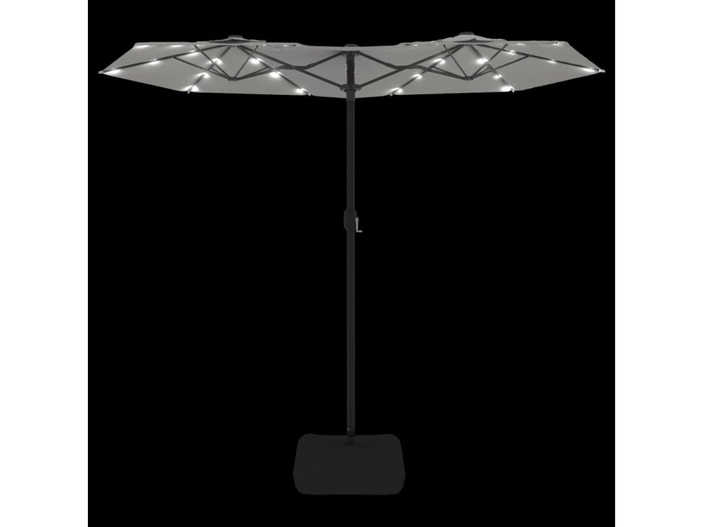 Tento elegantní dvojitý slunečník s LED diodami vám poskytne stín, a ochrání vás tak před sluníčkem a jeho škodlivým UV zářením.