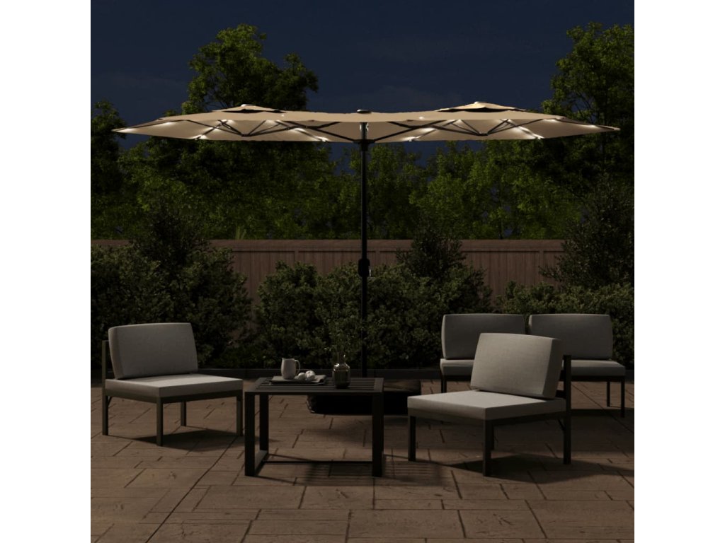 Tento elegantní dvojitý slunečník s LED diodami vám poskytne stín, a ochrání vás tak před sluníčkem a jeho škodlivým UV zářením.