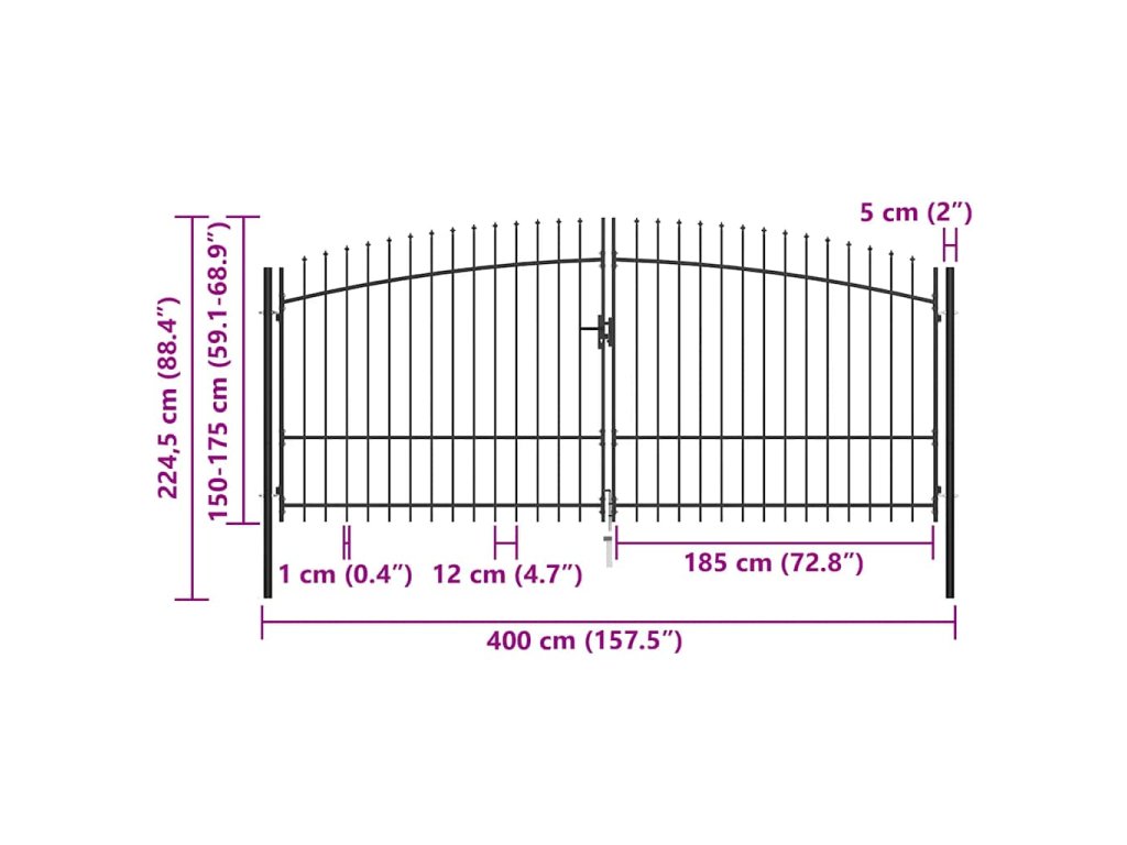 Zahradní bránu tvoří svislé pruty nahoře zakončené hroty a pevné vodorovné výztuhy, které rám zpevňují. Brána zaručuje vysoký stupeň soukromí a bezpečnosti a zároveň vytváří atraktivní vstup na váš pozemek. Je vyrobená z vysoce odolné oceli ošetřené práškovým lakem, který bránu chrání před rezavěním a korozí.