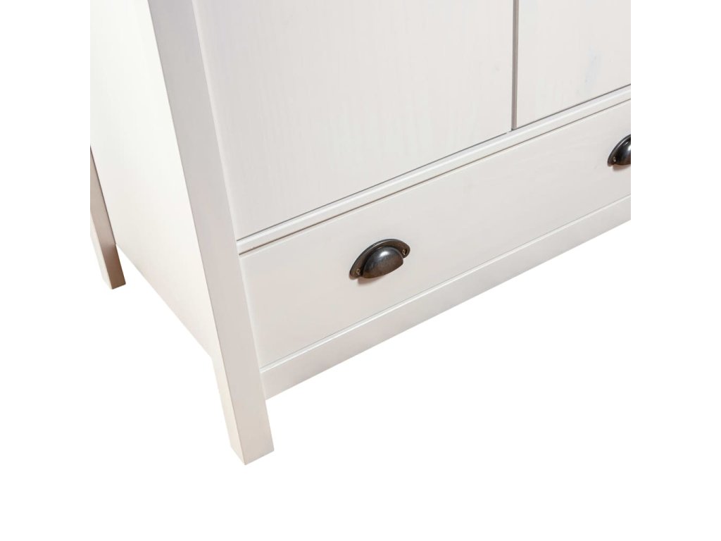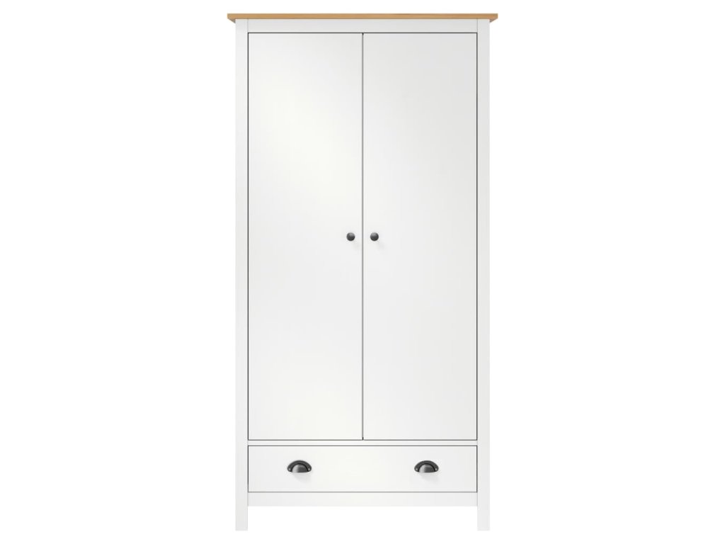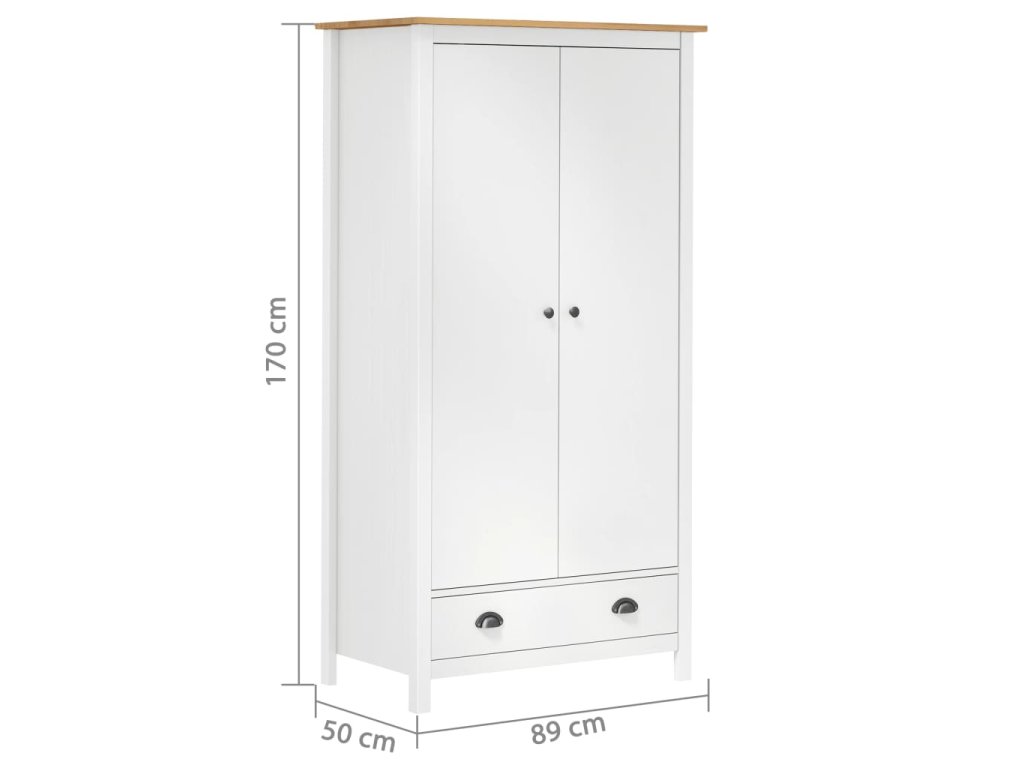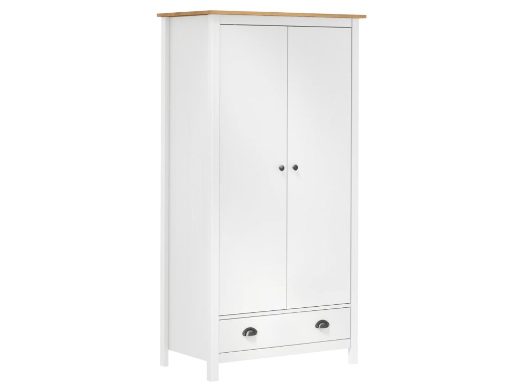 Šatní skříň je zhotovena z masivního borového dřeva, je tedy velmi robustní. Šatní skříň s 1 zásuvkou a 1 policí poskytuje dostatek prostoru pro přehledné uložení menších věcí na dosah ruky. Velká přihrádka je vybavena šatní tyčí, kterou můžete použít k zavěšení kabátů, šatů atd. Šatní skříň se snadno sestavuje.