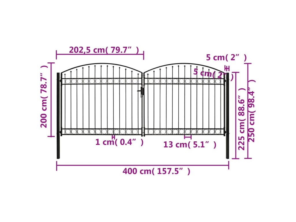 Branka má elegantní design s dekorativním obloukem ve své horní části a její silné horizontální příčky zpevňují rám. Branka vytváří krásný a zároveň bezpečný vstup na váš pozemek. Je vyrobená z vysoce odolné oceli a opatřená práškovým nástřikem proti rzi a korozi.