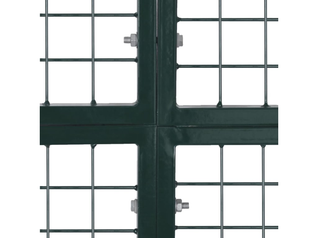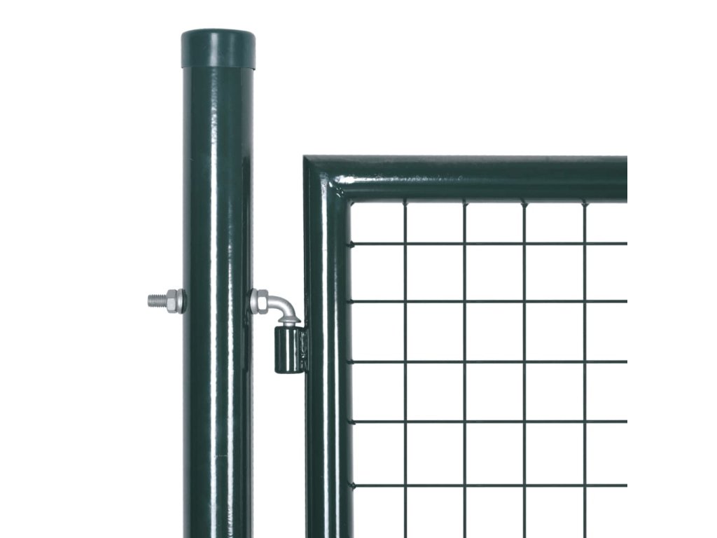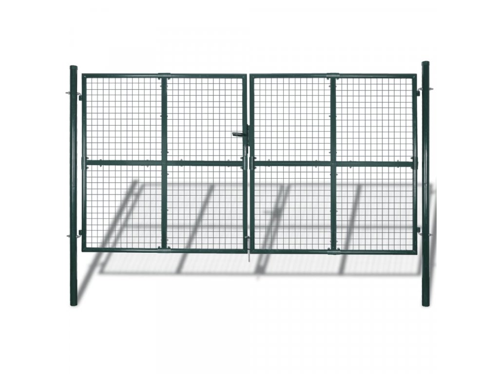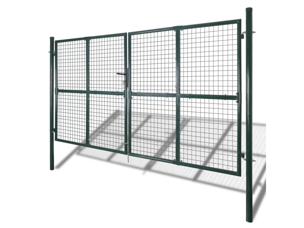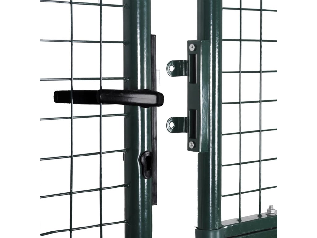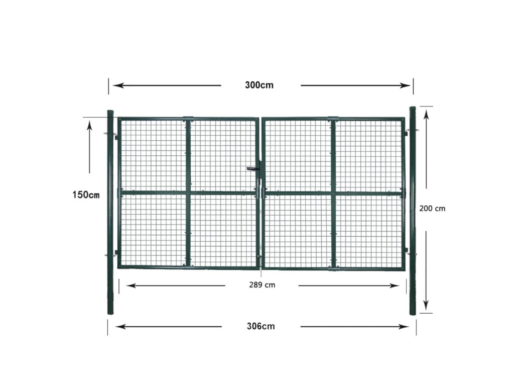 Tato brána, vyrobená z vysoce odolné oceli, má pevnou konstrukci a je ošetřená práškovým nástřikem proti rzi a korozi. Tato brána má dva pevné sloupky s robustními panty pro snadnou instalaci, a vysoce odolný uzamykací systém se třemi odpovídajícími klíči je rovněž součástí balení.