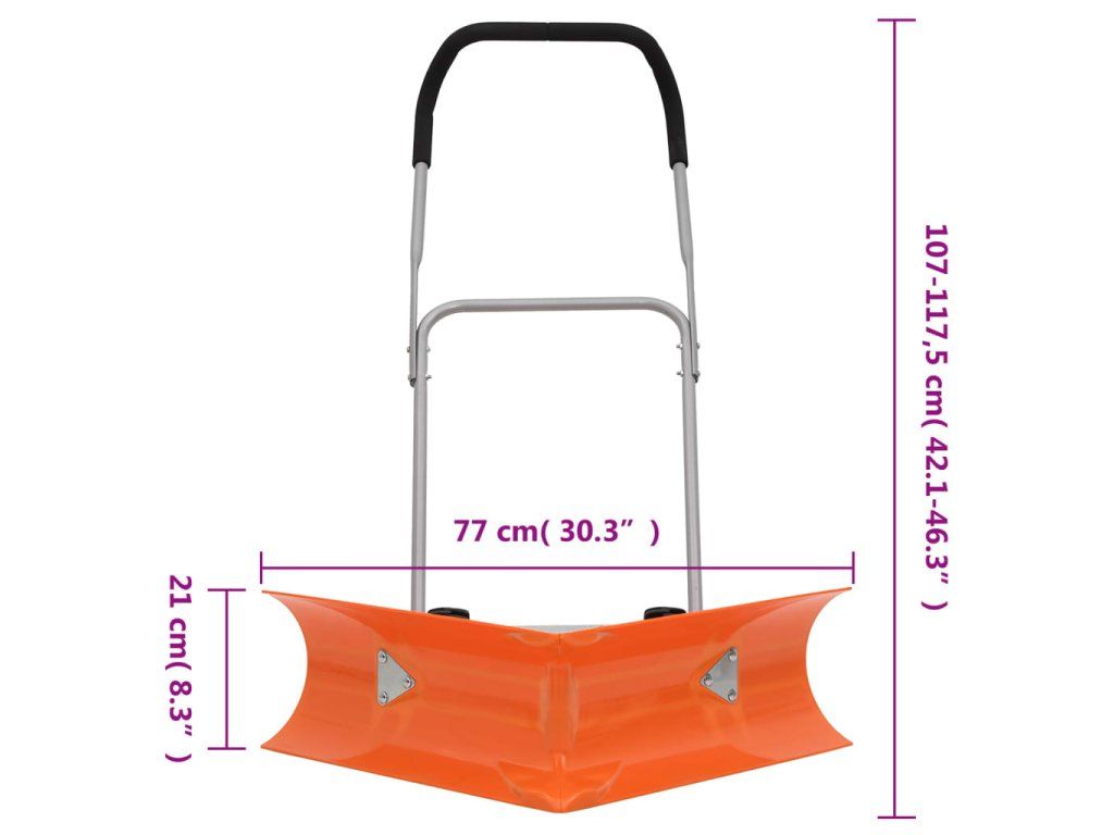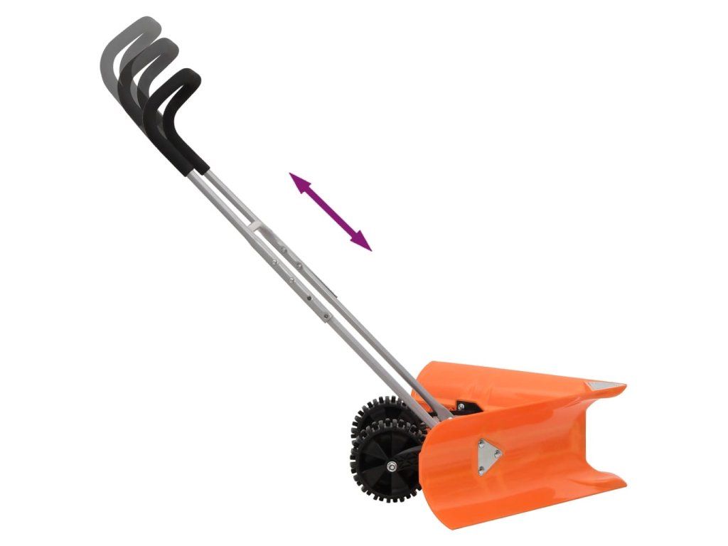 - Efektivní 2stranný odhrnovač sněhu: Díky hlavě ve tvaru písmene V o rozměrech 77 x 21 cm lze efektivně odklízet velké množství sněhu na jeden zátah. Hrablo zároveň také řeší problém ručního odhrnování tím, že sníh tlačí na levou a pravou stranu cesty, čímž zabraňuje nepříjemnému hromadění.