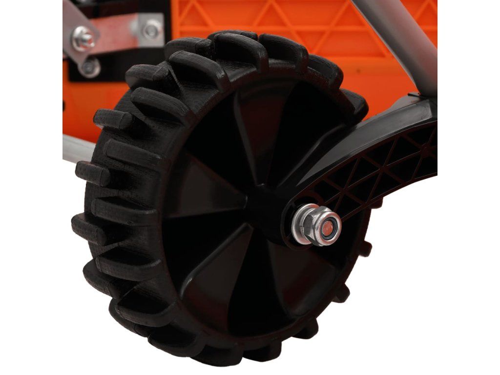 - Protiskluzová kola: Přilnavost kol zvyšuje třecí sílu sněhového pluhu a zajišťuje bezpečnost při odklízení sněhu na kluzké zasněžené silnici. Díky kolům je úklid sněhu rychlý a bez hluku.