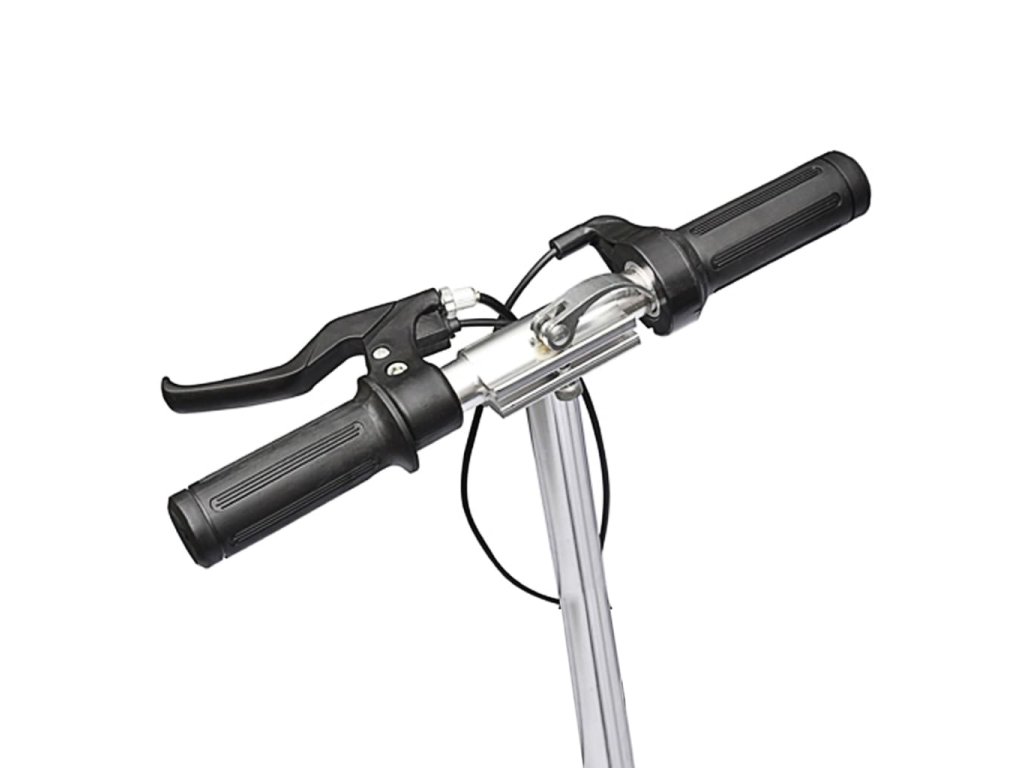 - Baterie s životností 30 minut: Je vybavená výkonnou baterií, která pracuje až 30 minut (v závislosti na vybití). Koloběžka je vybavena zadní brzdou.