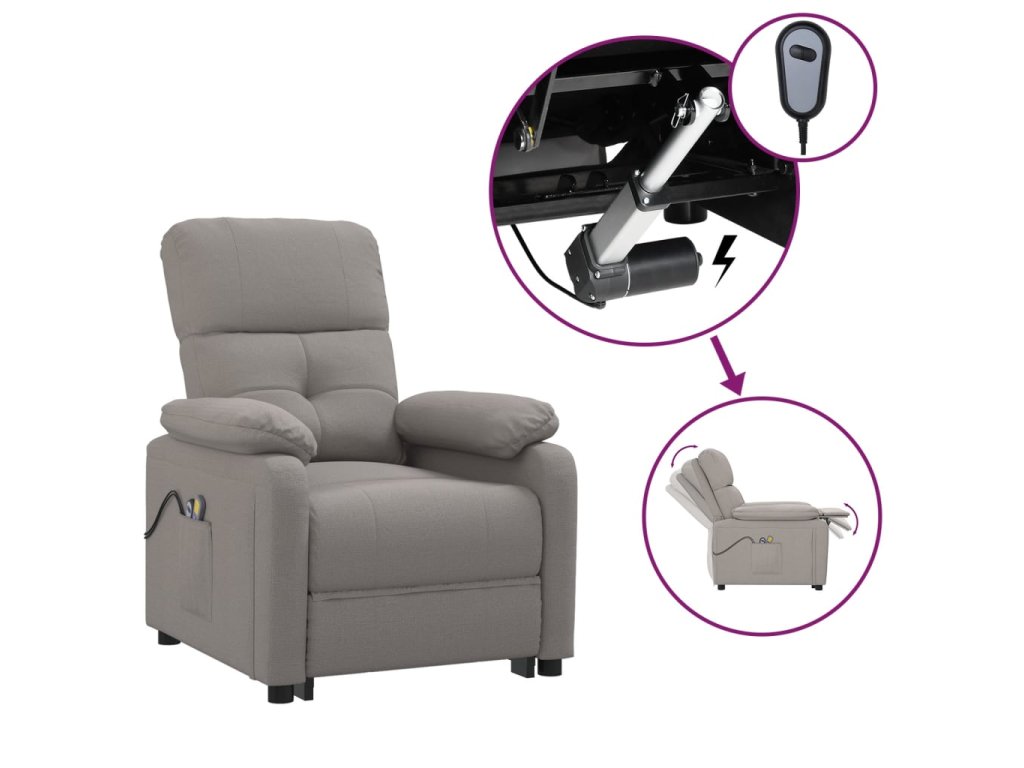 - Elektrická polohovací funkce: Polohovací křeslo je vybaveno elektromotorem pro funkci naklápění. Má 3 polohy naklápění, takže si můžete snadno nastavit opěradlo a podnožku pomocí přiloženého dvoutlačítkového ovladače, jak vám to bude nejlépe vyhovovat.