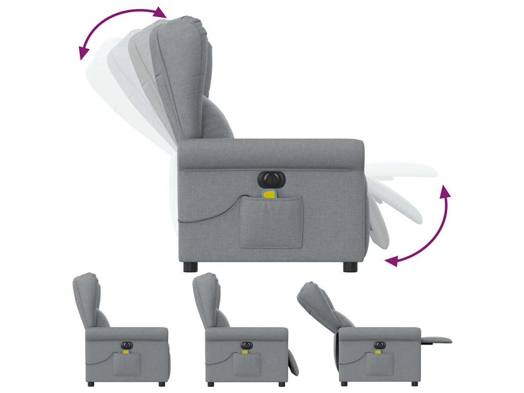 - Funkce elektrického sklápění: Toto polohovací křeslo je vybaveno elektromotorem. Jednoduchým stisknutím tlačítka na boku křesla můžete automaticky nastavit opěrku nohou a opěradlo do libovolné polohy tak, abyste se cítili pohodlně. Tato funkce umožňuje maximální náklon 135 stupňů. Opěradlo se navíc může jednoduchým stisknutím tlačítka automaticky vrátit do původní polohy.