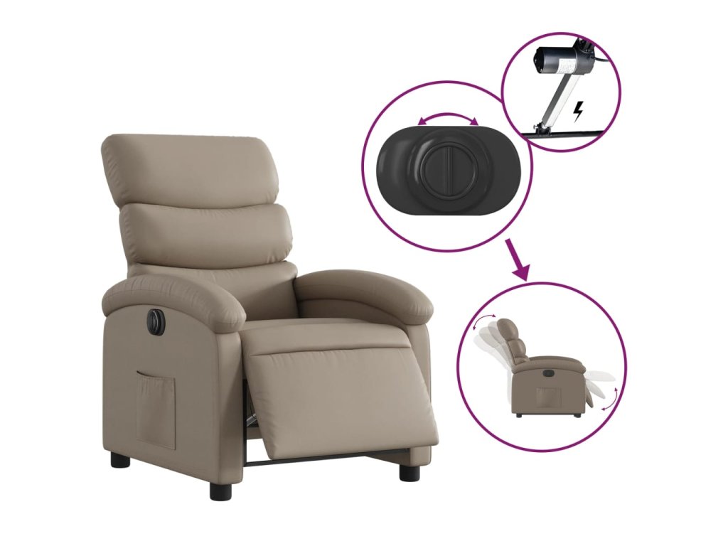 - Funkce elektrického sklápění: Toto polohovací křeslo je vybaveno elektromotorem. Jednoduchým stisknutím tlačítka na boku křesla můžete automaticky nastavit opěrku nohou a opěradlo do libovolné polohy tak, abyste se cítili pohodlně. Tato funkce umožňuje maximální náklon 135 stupňů. Opěradlo se navíc může jednoduchým stisknutím tlačítka automaticky vrátit do původní polohy.