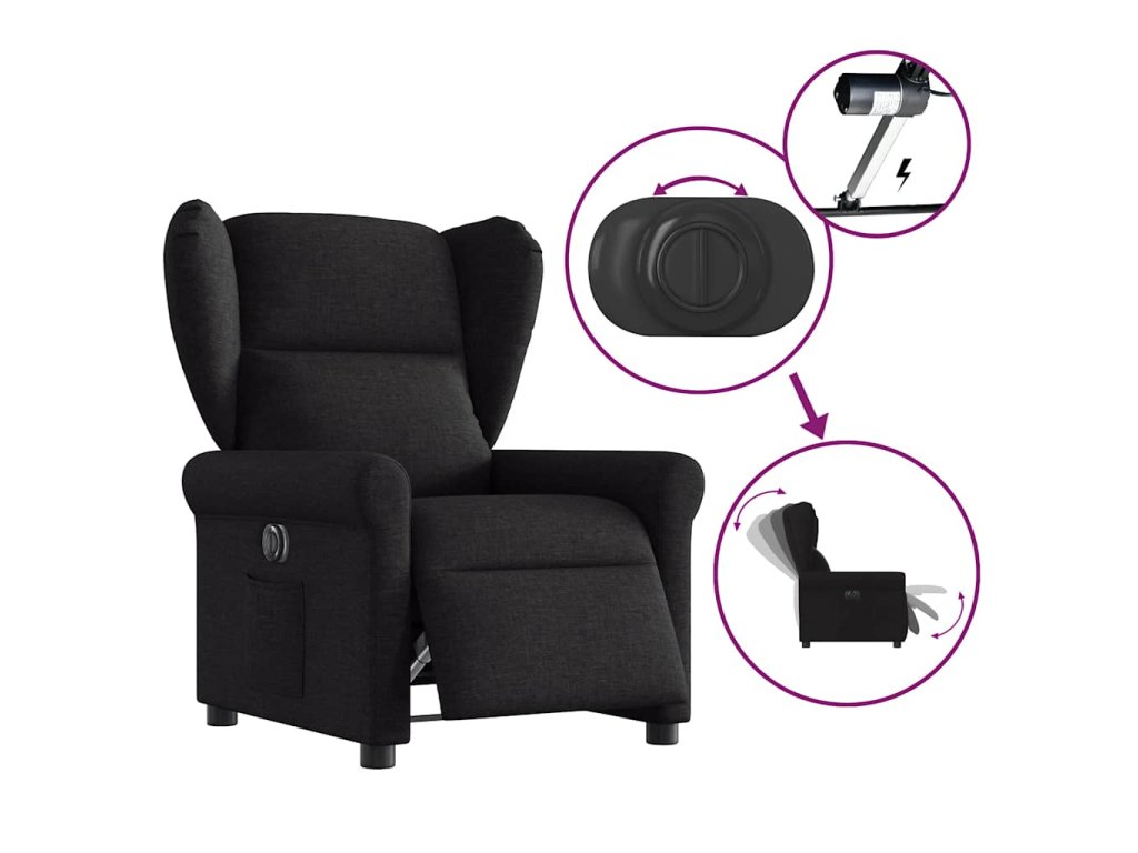 - Funkce elektrického sklápění: Toto polohovací křeslo je vybaveno elektromotorem. Jednoduchým stisknutím tlačítka na boku křesla můžete automaticky nastavit opěrku nohou a opěradlo do libovolné polohy tak, abyste se cítili pohodlně. Tato funkce umožňuje maximální náklon 135 stupňů. Opěradlo se navíc může jednoduchým stisknutím tlačítka automaticky vrátit do původní polohy.