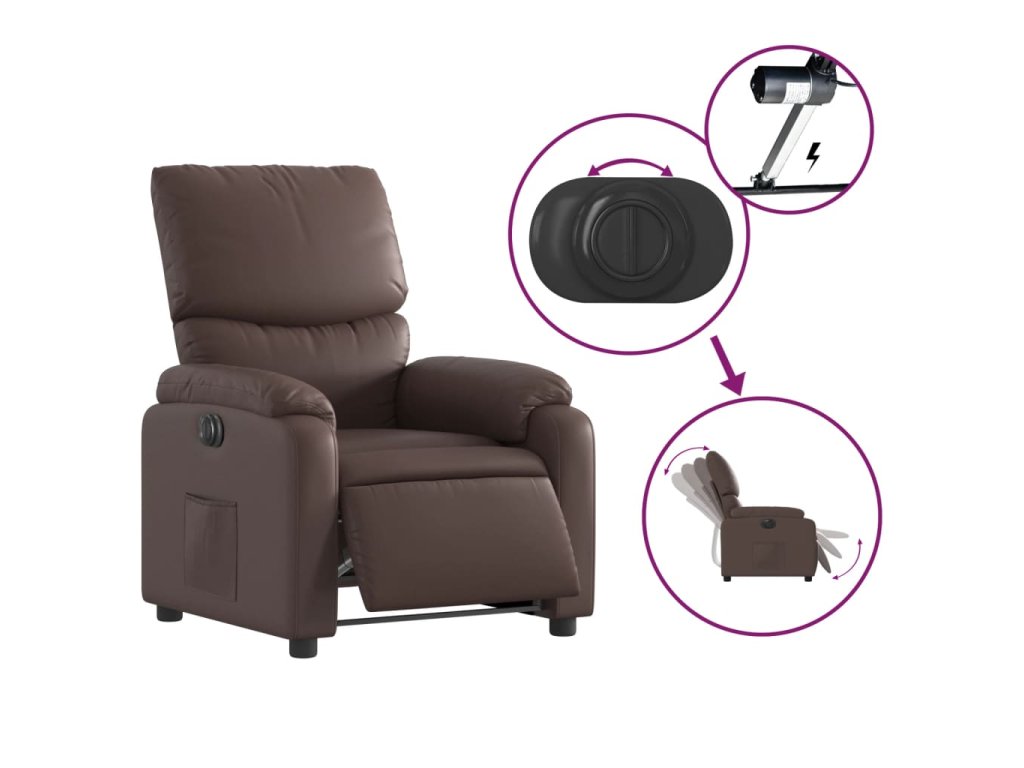 - Funkce elektrického sklápění: Toto polohovací křeslo je vybaveno elektromotorem. Jednoduchým stisknutím tlačítka na boku křesla můžete automaticky nastavit opěrku nohou a opěradlo do libovolné polohy tak, abyste se cítili pohodlně. Tato funkce umožňuje maximální náklon 135 stupňů. Opěradlo se navíc může jednoduchým stisknutím tlačítka automaticky vrátit do původní polohy.