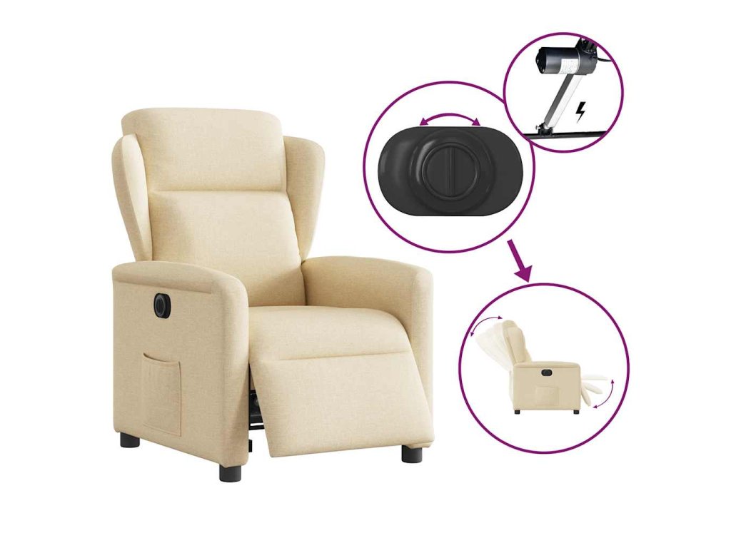 - Funkce elektrického sklápění: Toto polohovací křeslo je vybaveno elektromotorem. Jednoduchým stisknutím tlačítka na boku křesla můžete automaticky nastavit opěrku nohou a opěradlo do libovolné polohy tak, abyste se cítili pohodlně. Tato funkce umožňuje maximální náklon 135 stupňů. Opěradlo se navíc může jednoduchým stisknutím tlačítka automaticky vrátit do původní polohy.