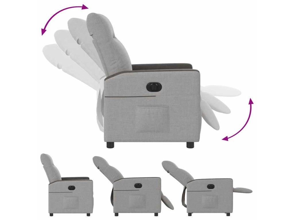 - Funkce elektrického sklápění: Toto polohovací křeslo je vybaveno elektromotorem. Jednoduchým stisknutím tlačítka na boku křesla můžete automaticky nastavit opěrku nohou a opěradlo do libovolné polohy tak, abyste se cítili pohodlně. Tato funkce umožňuje maximální náklon 135 stupňů. Opěradlo se navíc může jednoduchým stisknutím tlačítka automaticky vrátit do původní polohy.