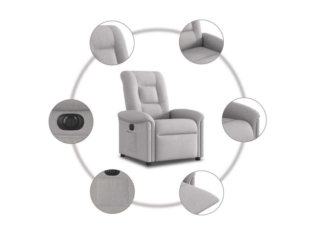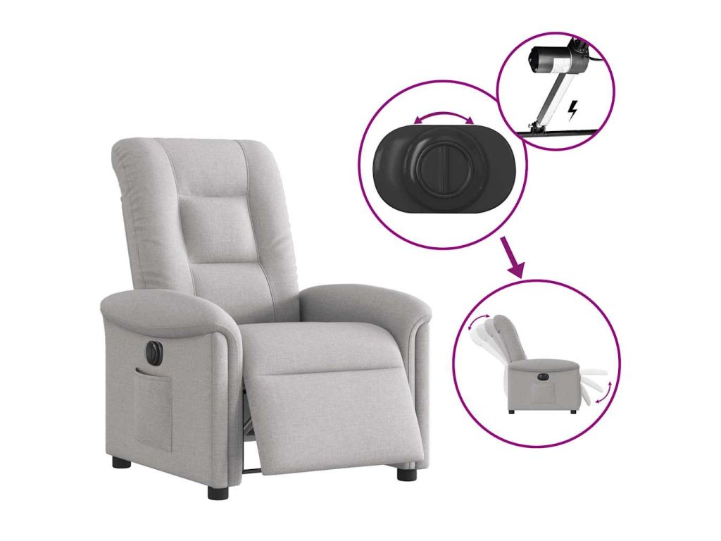 - Funkce elektrického sklápění: Toto polohovací křeslo je vybaveno elektromotorem. Jednoduchým stisknutím tlačítka na boku křesla můžete automaticky nastavit opěrku nohou a opěradlo do libovolné polohy tak, abyste se cítili pohodlně. Tato funkce umožňuje maximální náklon 135 stupňů. Opěradlo se navíc může jednoduchým stisknutím tlačítka automaticky vrátit do původní polohy.