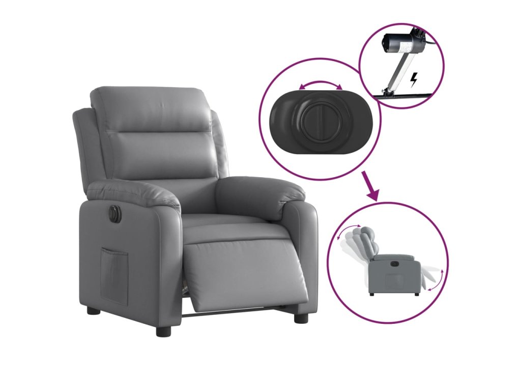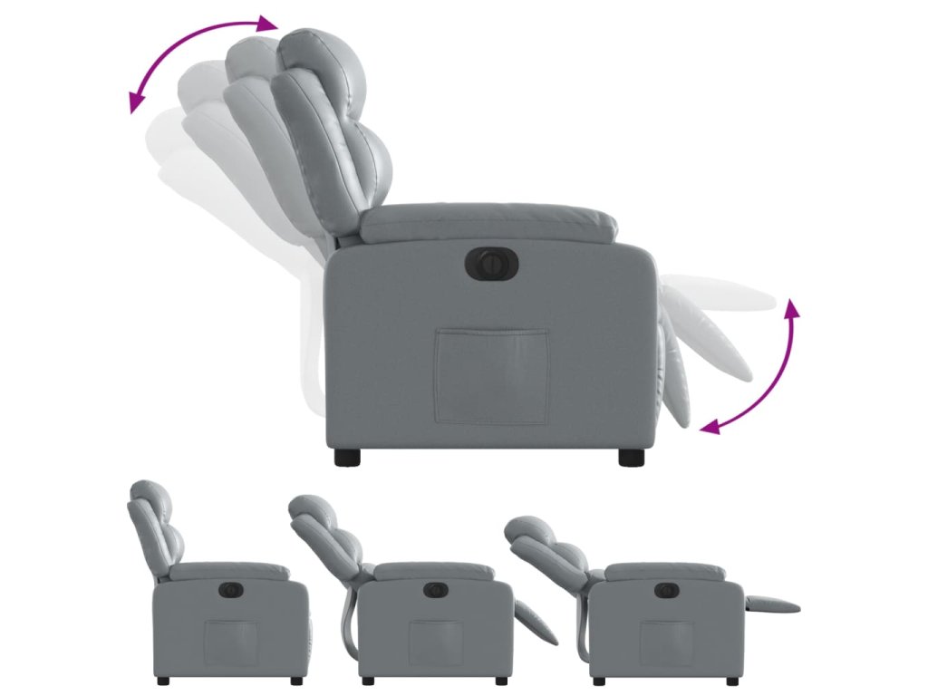 - Funkce elektrického sklápění: Toto polohovací křeslo je vybaveno elektromotorem. Jednoduchým stisknutím tlačítka na boku křesla můžete automaticky nastavit opěrku nohou a opěradlo do libovolné polohy tak, abyste se cítili pohodlně. Tato funkce umožňuje maximální náklon 135 stupňů. Opěradlo se navíc může jednoduchým stisknutím tlačítka automaticky vrátit do původní polohy.