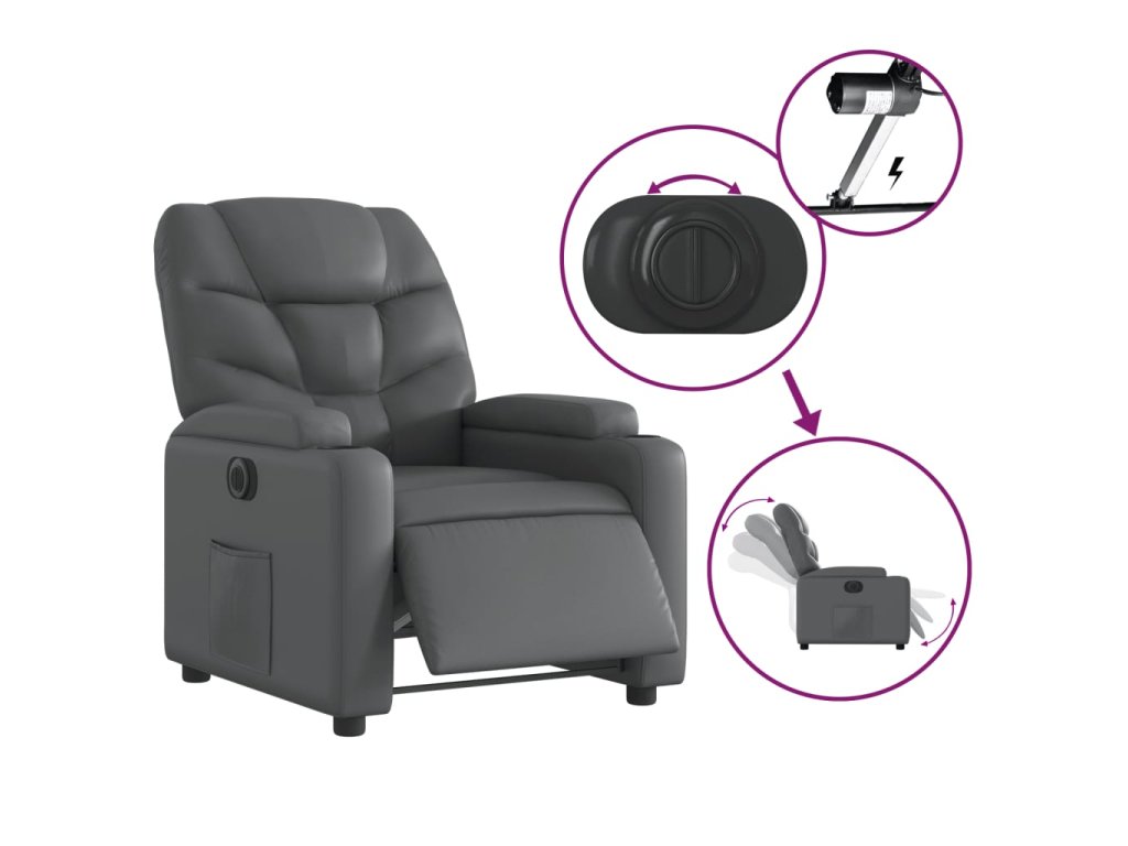- Funkce elektrického sklápění: Toto polohovací křeslo je vybaveno elektromotorem. Jednoduchým stisknutím tlačítka na boku křesla můžete automaticky nastavit opěrku nohou a opěradlo do libovolné polohy tak, abyste se cítili pohodlně. Tato funkce umožňuje maximální náklon 135 stupňů. Opěradlo se navíc může jednoduchým stisknutím tlačítka automaticky vrátit do původní polohy.