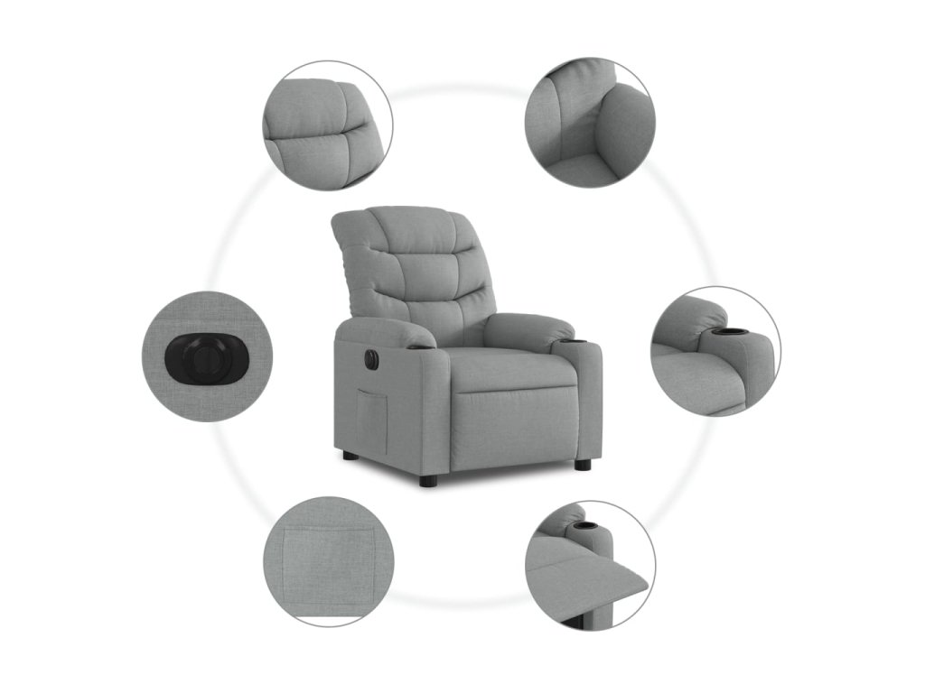 - Funkce elektrického sklápění: Toto polohovací křeslo je vybaveno elektromotorem. Jednoduchým stisknutím tlačítka na boku křesla můžete automaticky nastavit opěrku nohou a opěradlo do libovolné polohy tak, abyste se cítili pohodlně. Tato funkce umožňuje maximální náklon 135 stupňů. Opěradlo se navíc může jednoduchým stisknutím tlačítka automaticky vrátit do původní polohy.