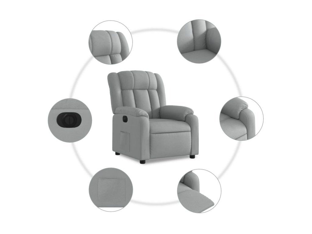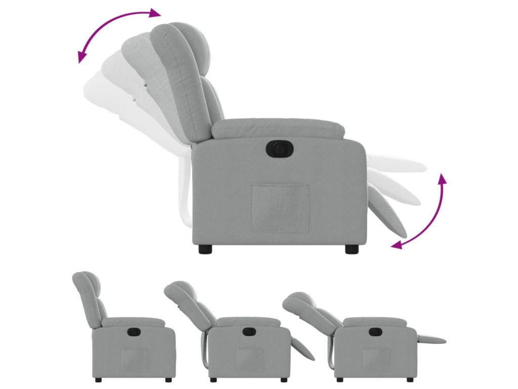 - Funkce elektrického sklápění: Toto polohovací křeslo je vybaveno elektromotorem. Jednoduchým stisknutím tlačítka na boku křesla můžete automaticky nastavit opěrku nohou a opěradlo do libovolné polohy tak, abyste se cítili pohodlně. Tato funkce umožňuje maximální náklon 135 stupňů. Opěradlo se navíc může jednoduchým stisknutím tlačítka automaticky vrátit do původní polohy.