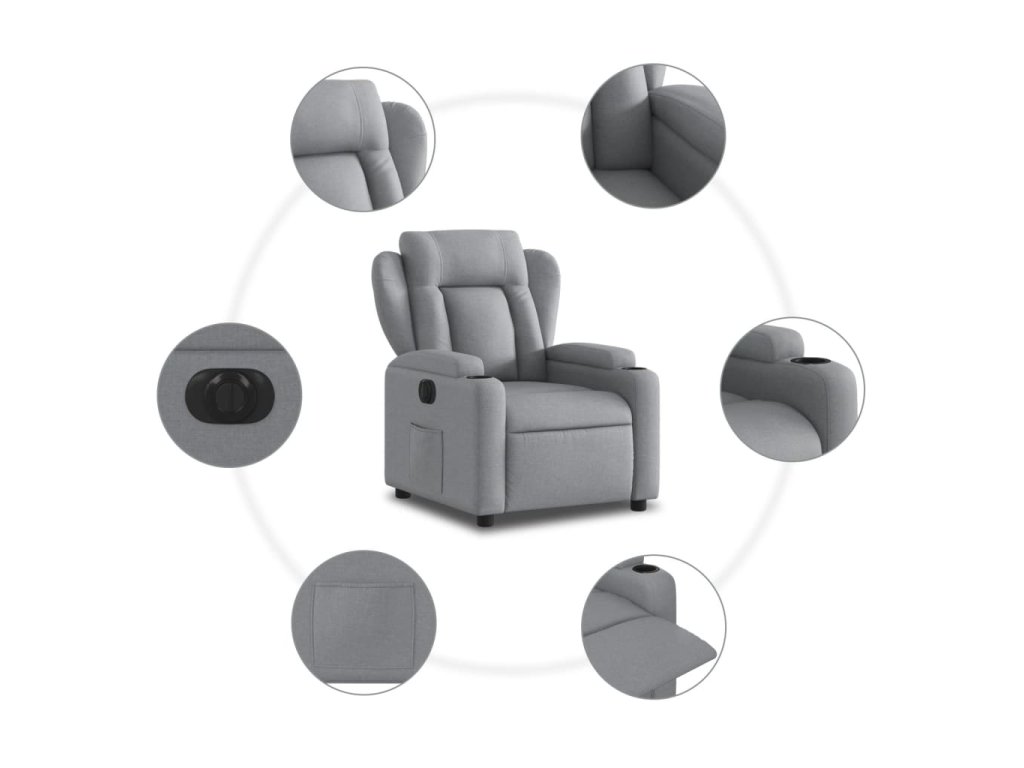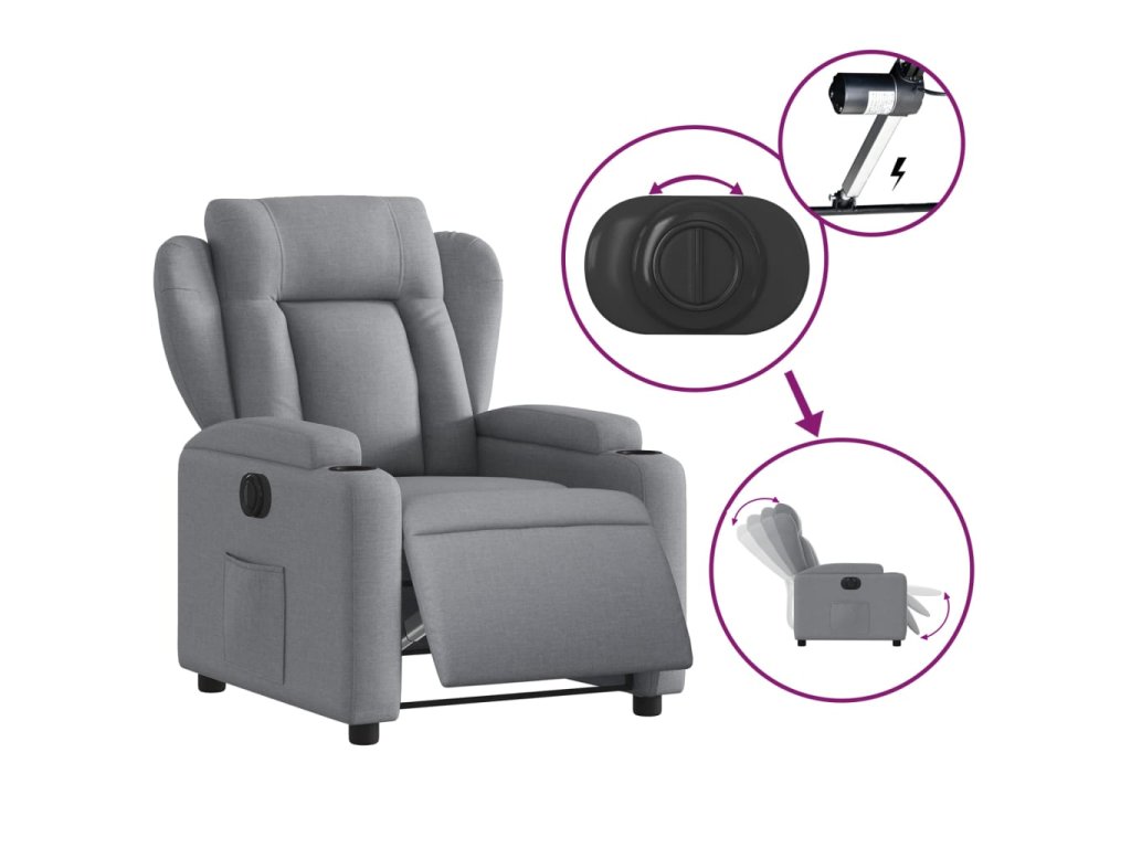 - Funkce elektrického sklápění: Toto polohovací křeslo je vybaveno elektromotorem. Jednoduchým stisknutím tlačítka na boku křesla můžete automaticky nastavit opěrku nohou a opěradlo do libovolné polohy tak, abyste se cítili pohodlně. Tato funkce umožňuje maximální náklon 135 stupňů. Opěradlo se navíc může jednoduchým stisknutím tlačítka automaticky vrátit do původní polohy.