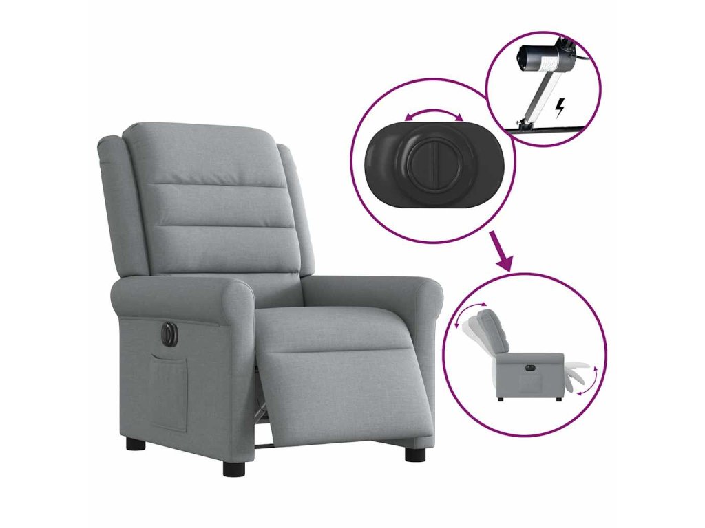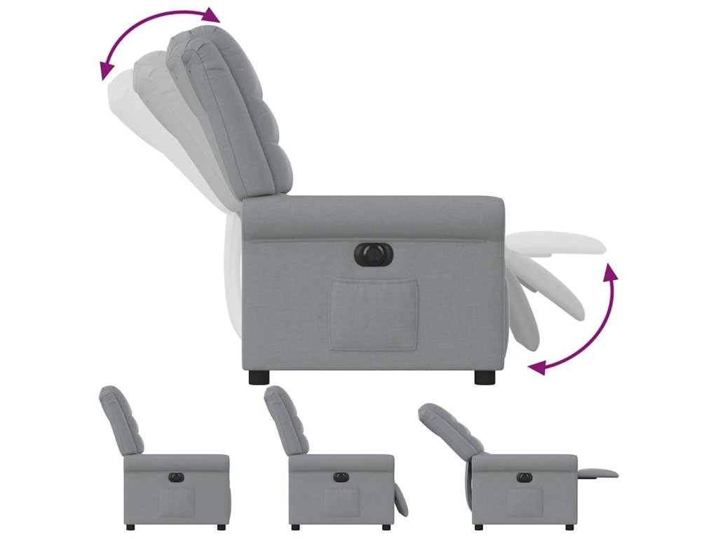 - Funkce elektrického sklápění: Toto polohovací křeslo je vybaveno elektromotorem. Jednoduchým stisknutím tlačítka na boku křesla můžete automaticky nastavit opěrku nohou a opěradlo do libovolné polohy tak, abyste se cítili pohodlně. Tato funkce umožňuje maximální náklon 135 stupňů. Opěradlo se navíc může jednoduchým stisknutím tlačítka automaticky vrátit do původní polohy.