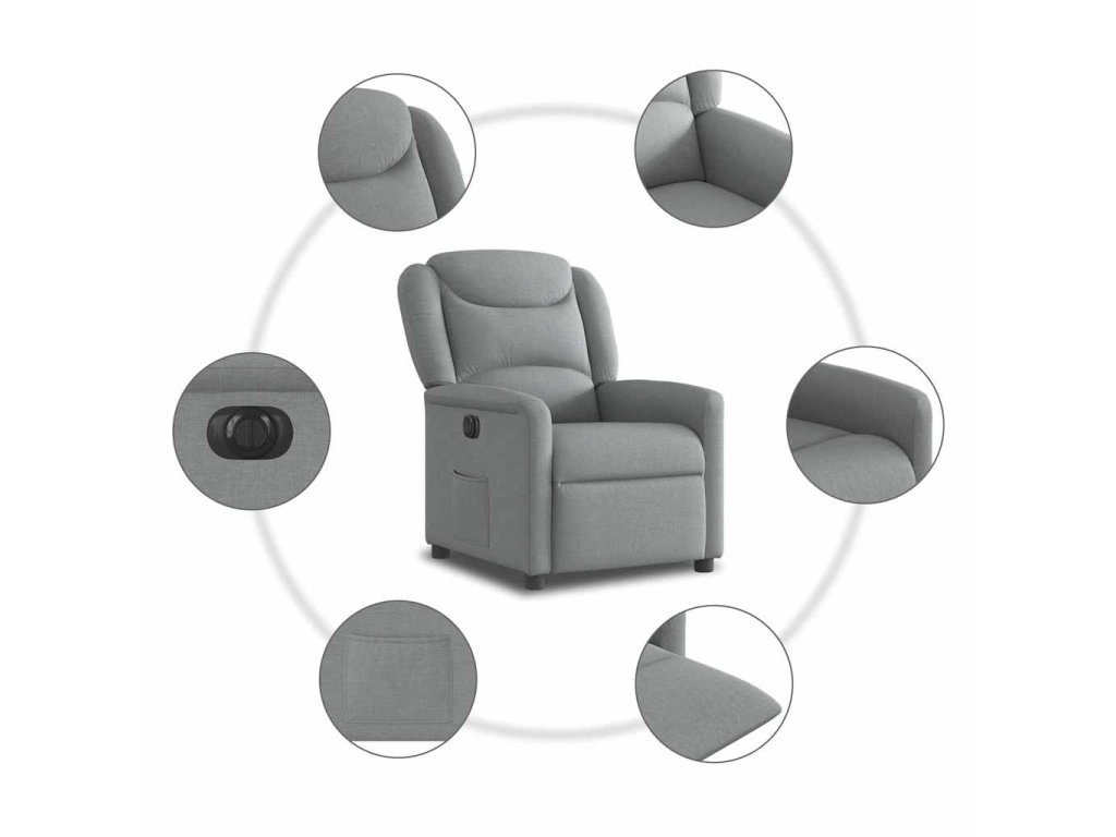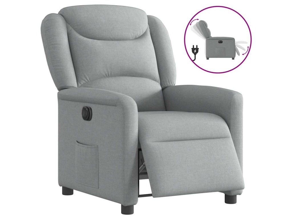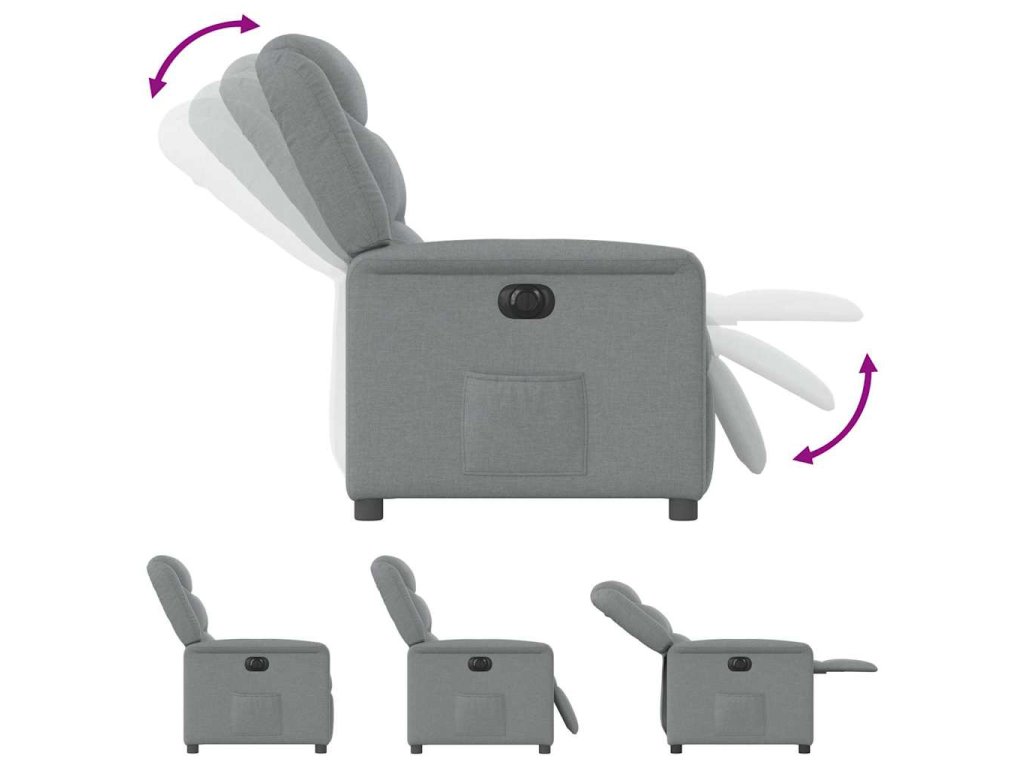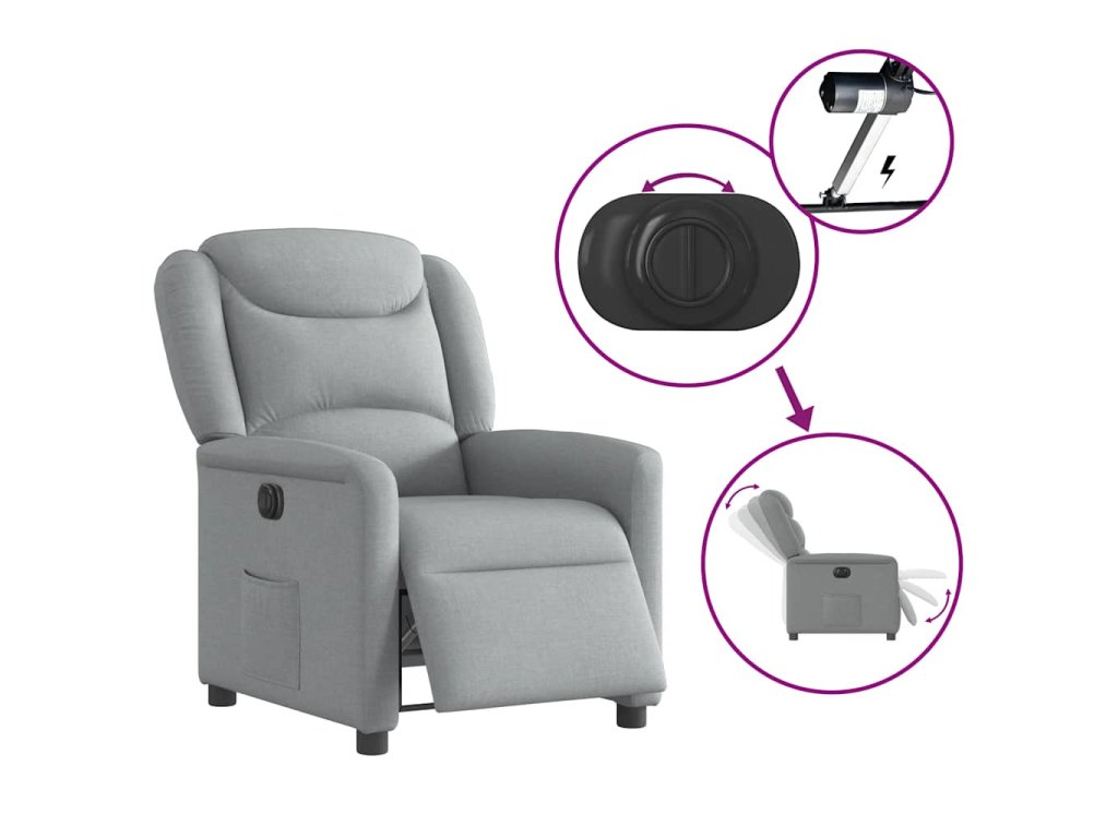 - Funkce elektrického sklápění: Toto polohovací křeslo je vybaveno elektromotorem. Jednoduchým stisknutím tlačítka na boku křesla můžete automaticky nastavit opěrku nohou a opěradlo do libovolné polohy tak, abyste se cítili pohodlně. Tato funkce umožňuje maximální náklon 135 stupňů. Opěradlo se navíc může jednoduchým stisknutím tlačítka automaticky vrátit do původní polohy.