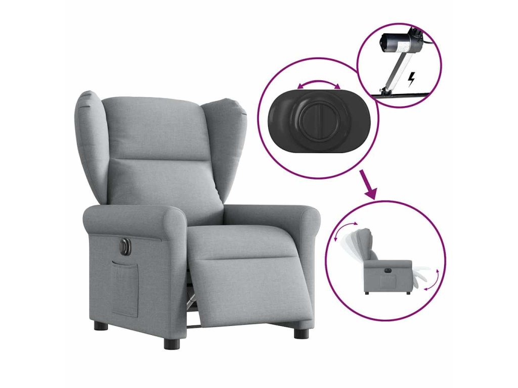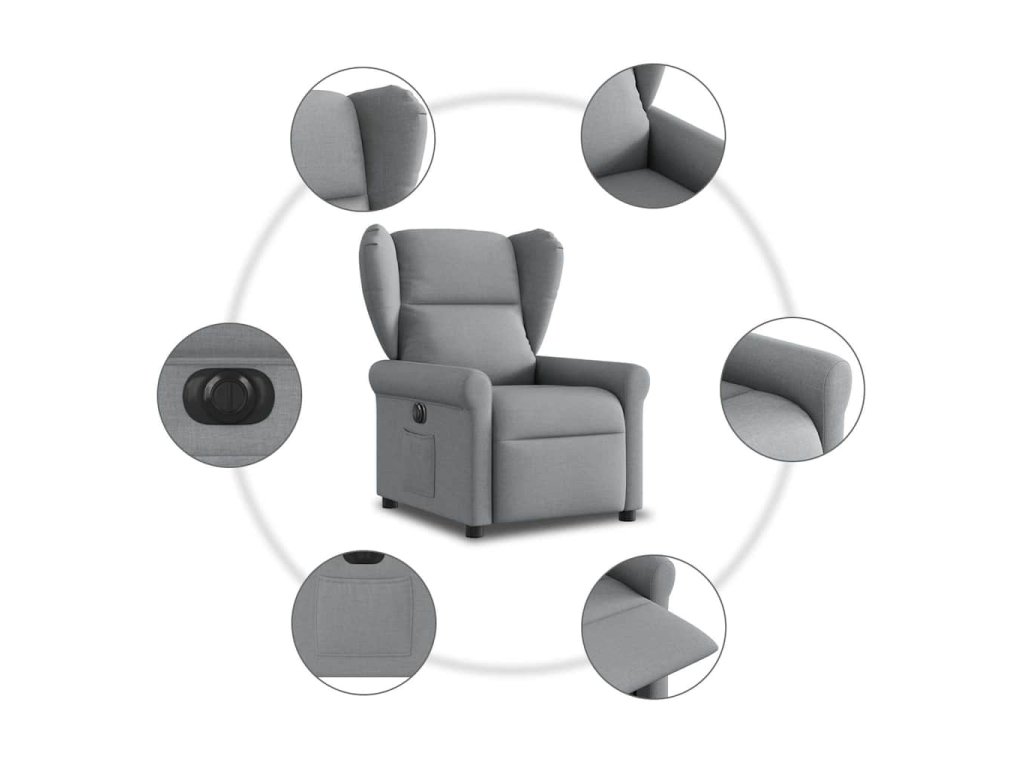 - Funkce elektrického sklápění: Toto polohovací křeslo je vybaveno elektromotorem. Jednoduchým stisknutím tlačítka na boku křesla můžete automaticky nastavit opěrku nohou a opěradlo do libovolné polohy tak, abyste se cítili pohodlně. Tato funkce umožňuje maximální náklon 135 stupňů. Opěradlo se navíc může jednoduchým stisknutím tlačítka automaticky vrátit do původní polohy.