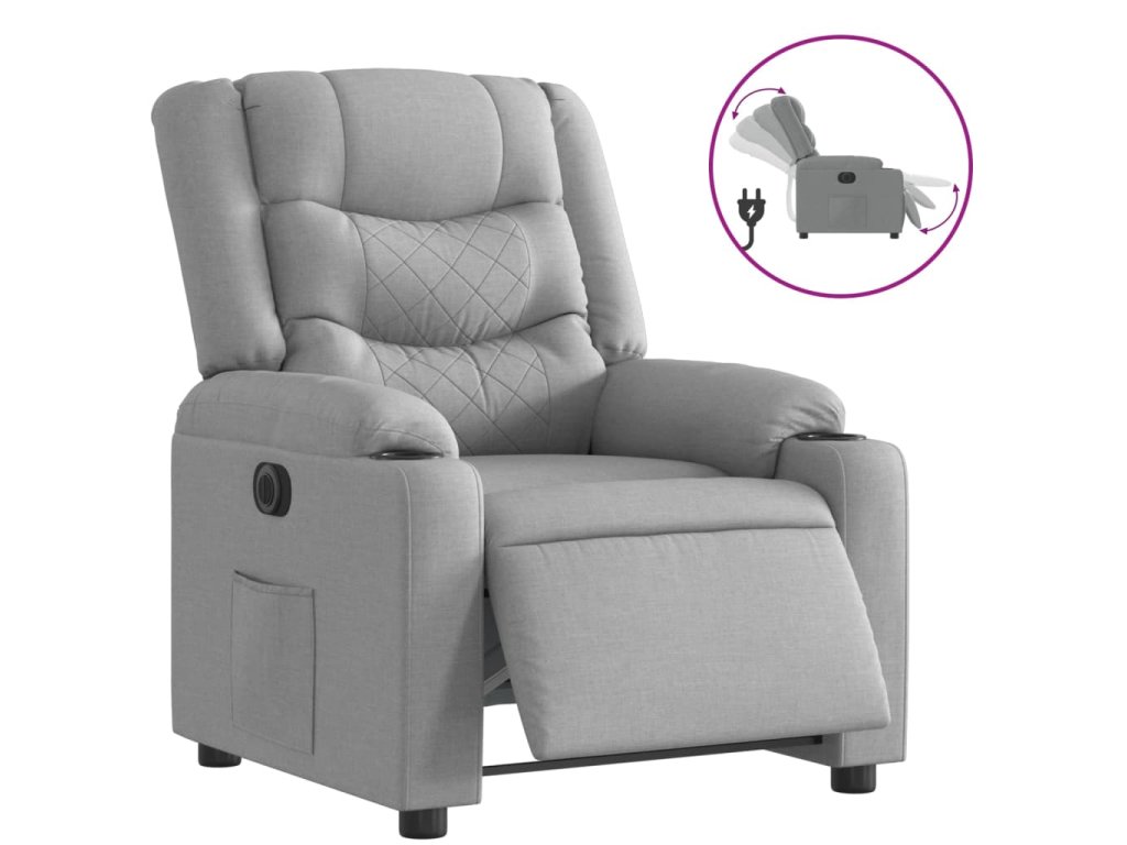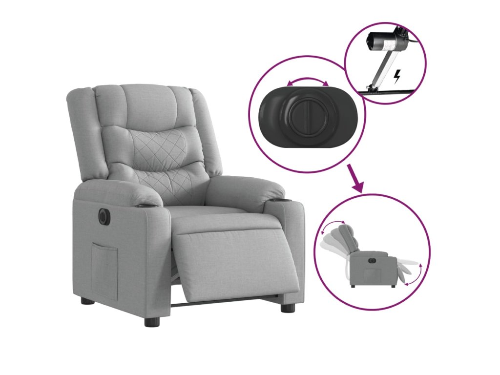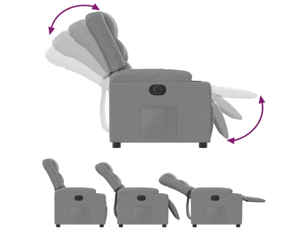 - Funkce elektrického sklápění: Toto polohovací křeslo je vybaveno elektromotorem. Jednoduchým stisknutím tlačítka na boku křesla můžete automaticky nastavit opěrku nohou a opěradlo do libovolné polohy tak, abyste se cítili pohodlně. Tato funkce umožňuje maximální náklon 135 stupňů. Opěradlo se navíc může jednoduchým stisknutím tlačítka automaticky vrátit do původní polohy.