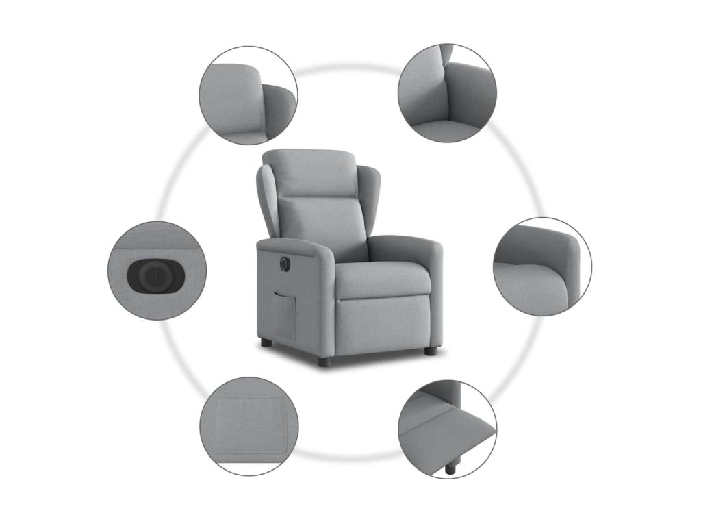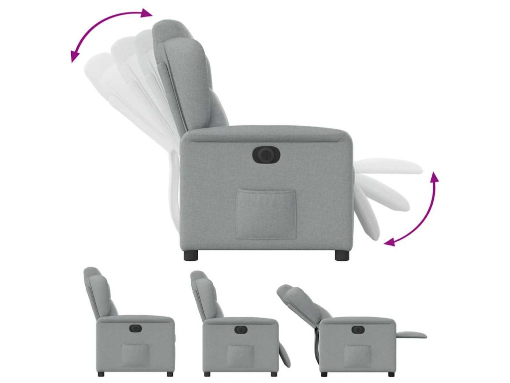 - Funkce elektrického sklápění: Toto polohovací křeslo je vybaveno elektromotorem. Jednoduchým stisknutím tlačítka na boku křesla můžete automaticky nastavit opěrku nohou a opěradlo do libovolné polohy tak, abyste se cítili pohodlně. Tato funkce umožňuje maximální náklon 135 stupňů. Opěradlo se navíc může jednoduchým stisknutím tlačítka automaticky vrátit do původní polohy.