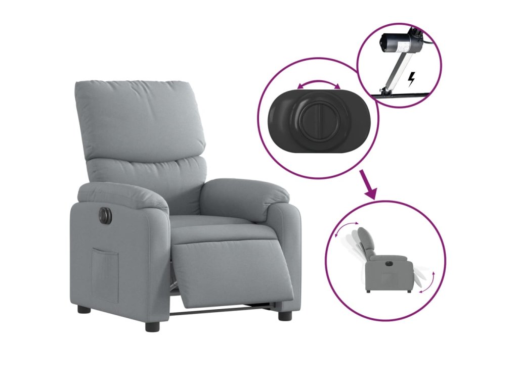 - Funkce elektrického sklápění: Toto polohovací křeslo je vybaveno elektromotorem. Jednoduchým stisknutím tlačítka na boku křesla můžete automaticky nastavit opěrku nohou a opěradlo do libovolné polohy tak, abyste se cítili pohodlně. Tato funkce umožňuje maximální náklon 135 stupňů. Opěradlo se navíc může jednoduchým stisknutím tlačítka automaticky vrátit do původní polohy.