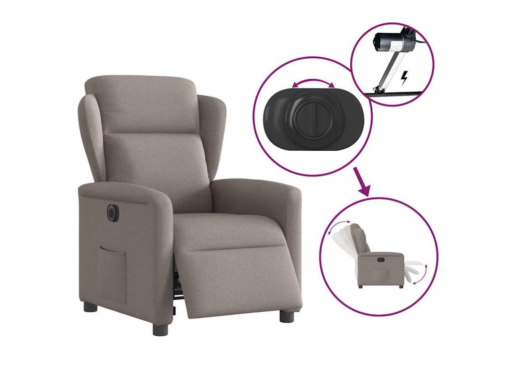 - Funkce elektrického sklápění: Toto polohovací křeslo je vybaveno elektromotorem. Jednoduchým stisknutím tlačítka na boku křesla můžete automaticky nastavit opěrku nohou a opěradlo do libovolné polohy tak, abyste se cítili pohodlně. Tato funkce umožňuje maximální náklon 135 stupňů. Opěradlo se navíc může jednoduchým stisknutím tlačítka automaticky vrátit do původní polohy.