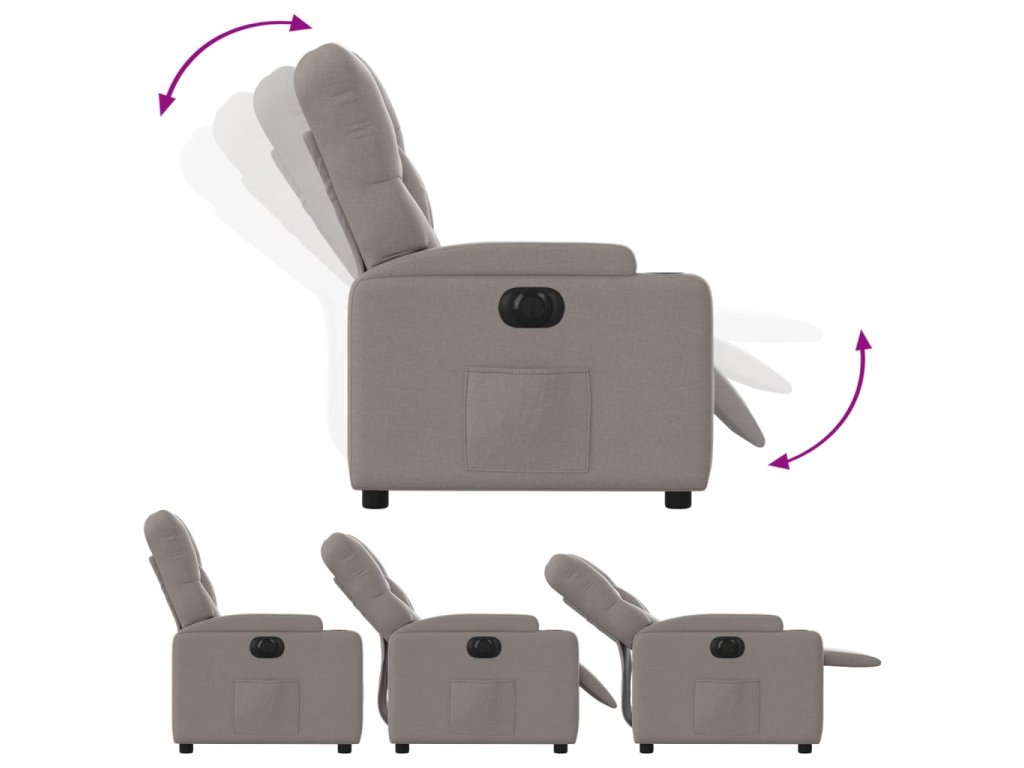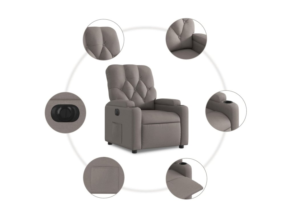 - Funkce elektrického sklápění: Toto polohovací křeslo je vybaveno elektromotorem. Jednoduchým stisknutím tlačítka na boku křesla můžete automaticky nastavit opěrku nohou a opěradlo do libovolné polohy tak, abyste se cítili pohodlně. Tato funkce umožňuje maximální náklon 135 stupňů. Opěradlo se navíc může jednoduchým stisknutím tlačítka automaticky vrátit do původní polohy.