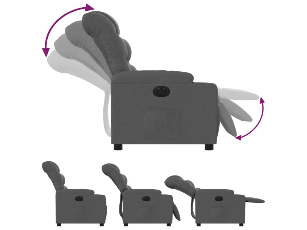 - Funkce elektrického sklápění: Toto polohovací křeslo je vybaveno elektromotorem. Jednoduchým stisknutím tlačítka na boku křesla můžete automaticky nastavit opěrku nohou a opěradlo do libovolné polohy tak, abyste se cítili pohodlně. Tato funkce umožňuje maximální náklon 135 stupňů. Opěradlo se navíc může jednoduchým stisknutím tlačítka automaticky vrátit do původní polohy.