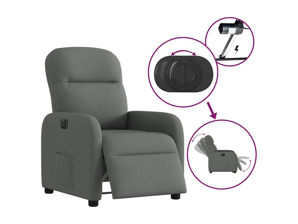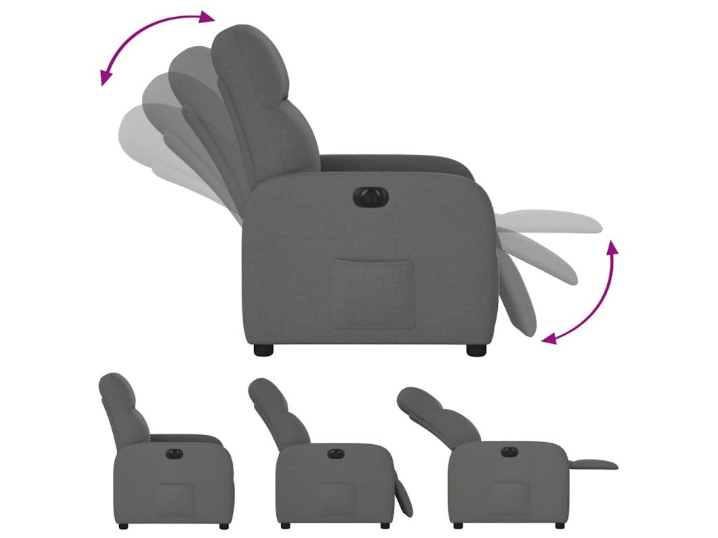 - Funkce elektrického sklápění: Toto polohovací křeslo je vybaveno elektromotorem. Jednoduchým stisknutím tlačítka na boku křesla můžete automaticky nastavit opěrku nohou a opěradlo do libovolné polohy tak, abyste se cítili pohodlně. Tato funkce umožňuje maximální náklon 135 stupňů. Opěradlo se navíc může jednoduchým stisknutím tlačítka automaticky vrátit do původní polohy.
