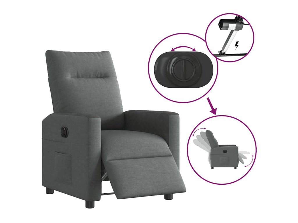 - Funkce elektrického sklápění: Toto polohovací křeslo je vybaveno elektromotorem. Jednoduchým stisknutím tlačítka na boku křesla můžete automaticky nastavit opěrku nohou a opěradlo do libovolné polohy tak, abyste se cítili pohodlně. Tato funkce umožňuje maximální náklon 135 stupňů. Opěradlo se navíc může jednoduchým stisknutím tlačítka automaticky vrátit do původní polohy.
