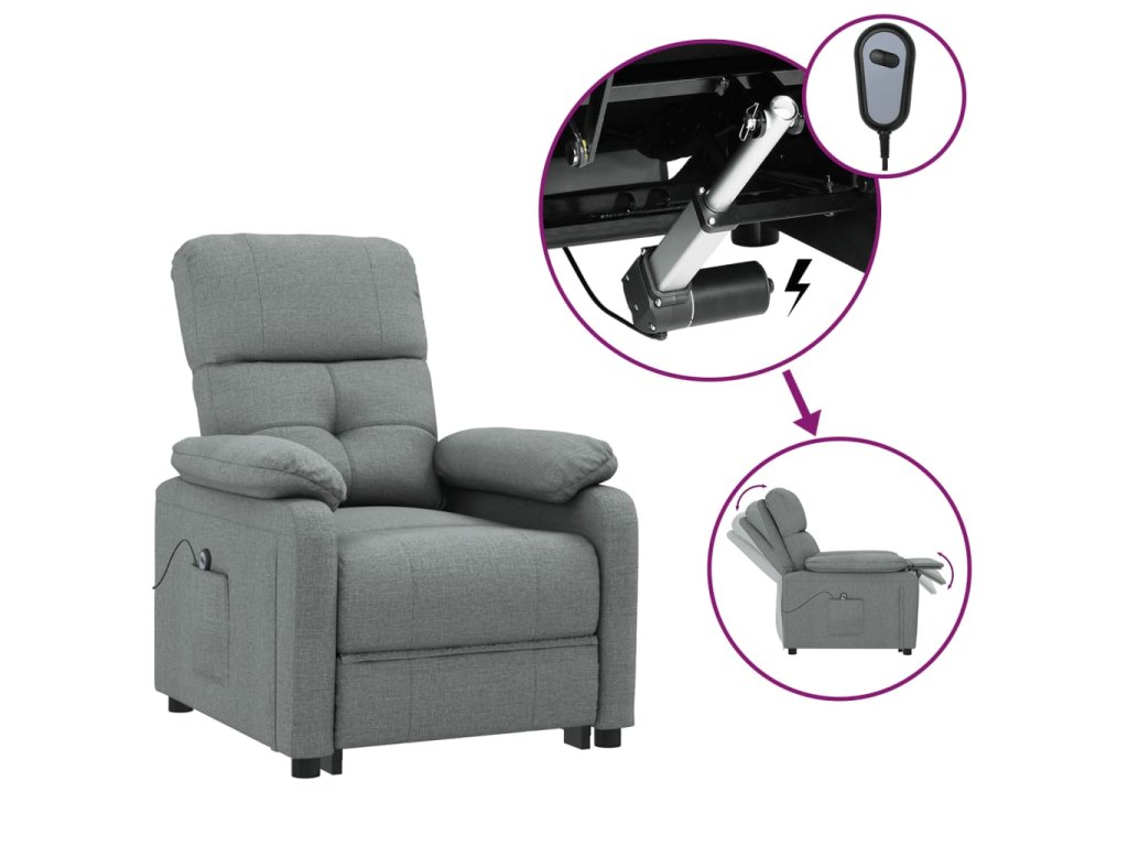 - Elektrická polohovací funkce: Polohovací křeslo je vybaveno elektromotorem pro funkci naklápění. Má 3 polohy naklápění, takže si můžete snadno nastavit opěradlo a podnožku pomocí přiloženého dvoutlačítkového ovladače, jak vám to bude nejlépe vyhovovat.