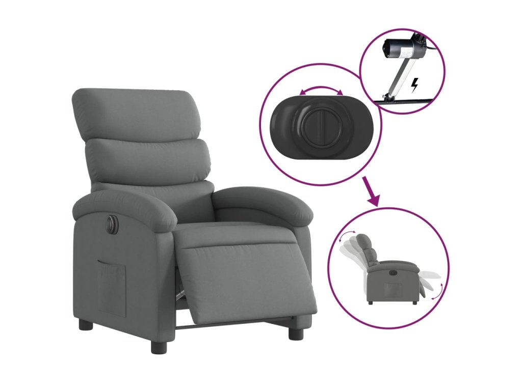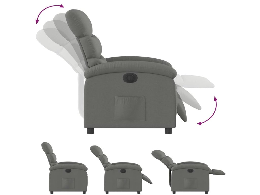 - Funkce elektrického sklápění: Toto polohovací křeslo je vybaveno elektromotorem. Jednoduchým stisknutím tlačítka na boku křesla můžete automaticky nastavit opěrku nohou a opěradlo do libovolné polohy tak, abyste se cítili pohodlně. Tato funkce umožňuje maximální náklon 135 stupňů. Opěradlo se navíc může jednoduchým stisknutím tlačítka automaticky vrátit do původní polohy.