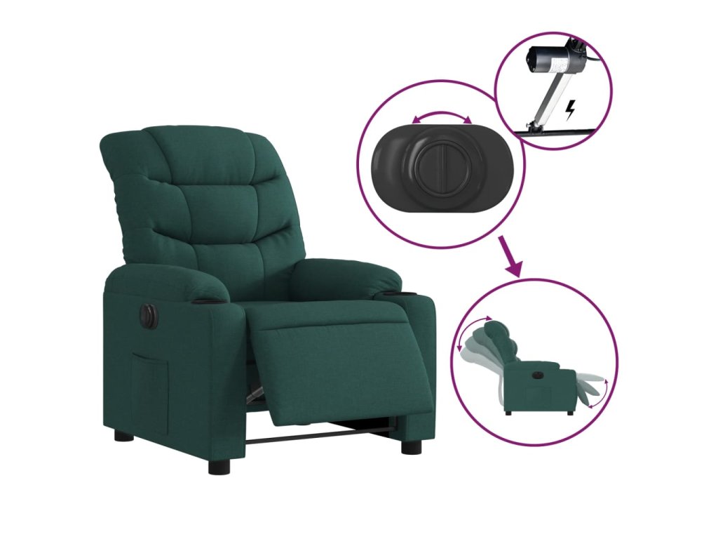 - Funkce elektrického sklápění: Toto polohovací křeslo je vybaveno elektromotorem. Jednoduchým stisknutím tlačítka na boku křesla můžete automaticky nastavit opěrku nohou a opěradlo do libovolné polohy tak, abyste se cítili pohodlně. Tato funkce umožňuje maximální náklon 135 stupňů. Opěradlo se navíc může jednoduchým stisknutím tlačítka automaticky vrátit do původní polohy.