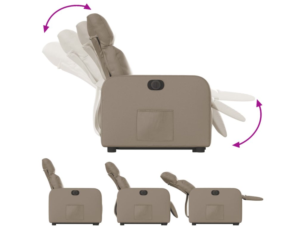 - Funkce elektrického sklápění: Toto polohovací křeslo je také vybaveno elektromotorem. Jednoduchým stisknutím tlačítka na boku křesla můžete automaticky nastavit opěrku nohou a opěradlo do libovolné polohy tak, abyste se cítili pohodlně. Tato funkce umožňuje maximální náklon 135 stupňů. Opěradlo se navíc může jednoduchým stisknutím tlačítka automaticky vrátit do původní polohy.