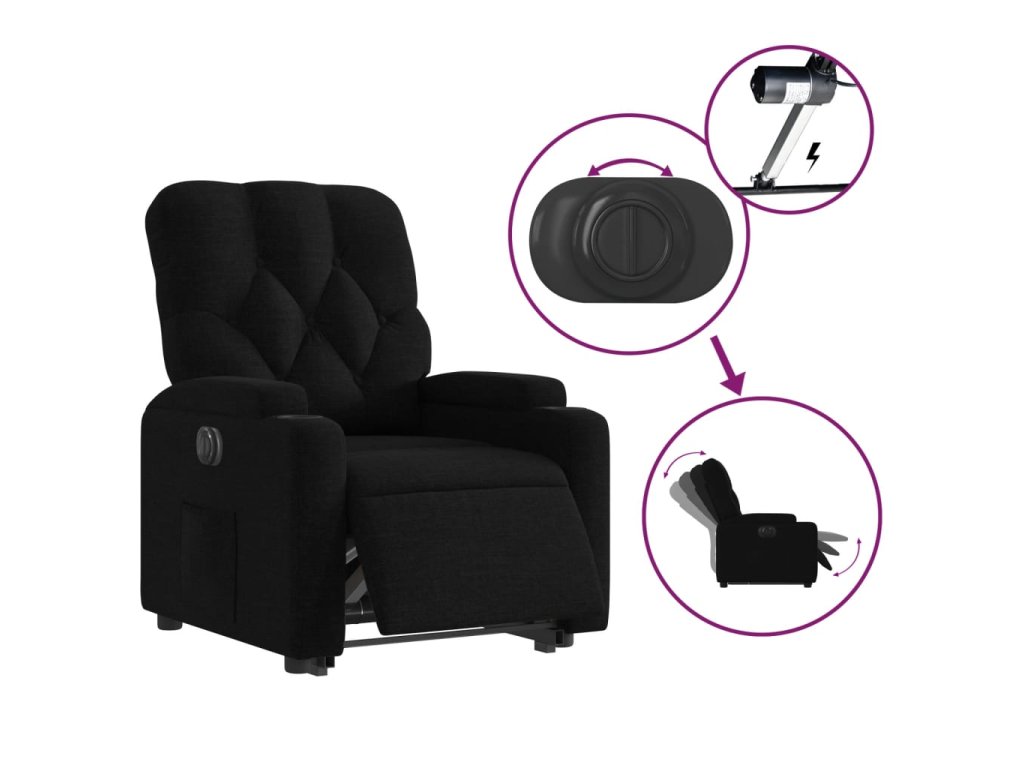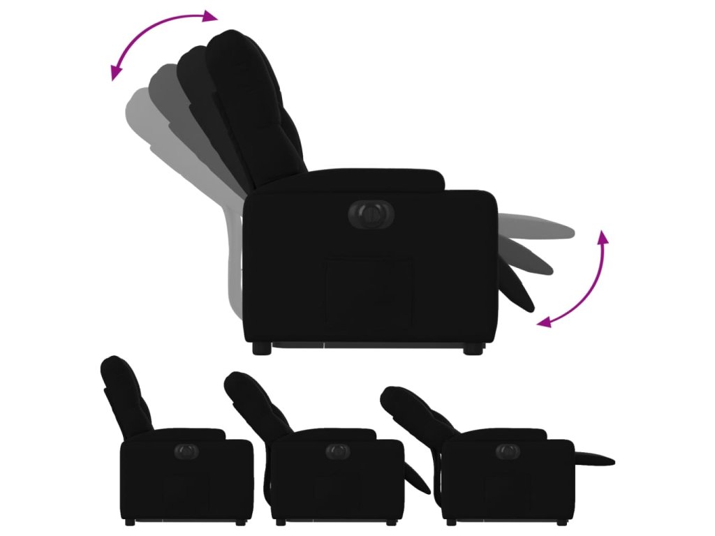 - Funkce elektrického sklápění: Toto polohovací křeslo je také vybaveno elektromotorem. Jednoduchým stisknutím tlačítka na boku křesla můžete automaticky nastavit opěrku nohou a opěradlo do libovolné polohy tak, abyste se cítili pohodlně. Tato funkce umožňuje maximální náklon 135 stupňů. Opěradlo se navíc může jednoduchým stisknutím tlačítka automaticky vrátit do původní polohy.
