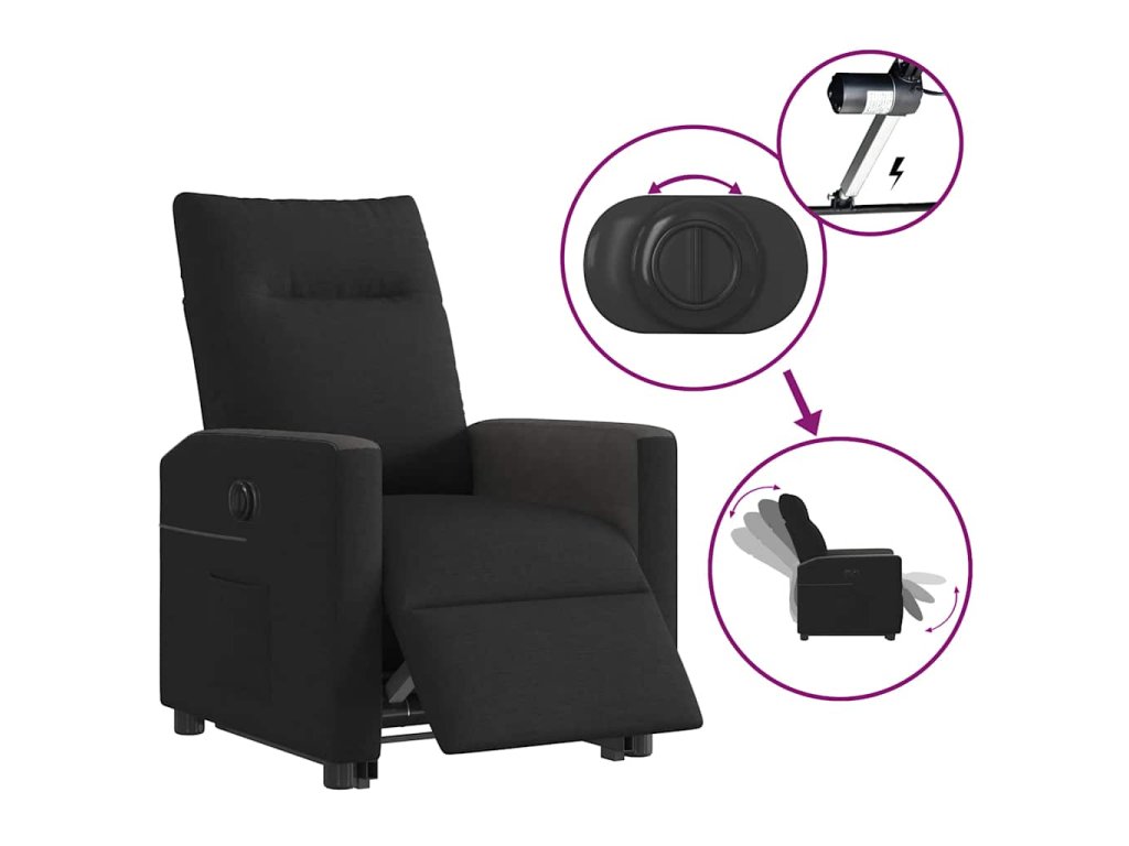 - Funkce elektrického sklápění: Toto polohovací křeslo je také vybaveno elektromotorem. Jednoduchým stisknutím tlačítka na boku křesla můžete automaticky nastavit opěrku nohou a opěradlo do libovolné polohy tak, abyste se cítili pohodlně. Tato funkce umožňuje maximální náklon 135 stupňů. Opěradlo se navíc může jednoduchým stisknutím tlačítka automaticky vrátit do původní polohy.