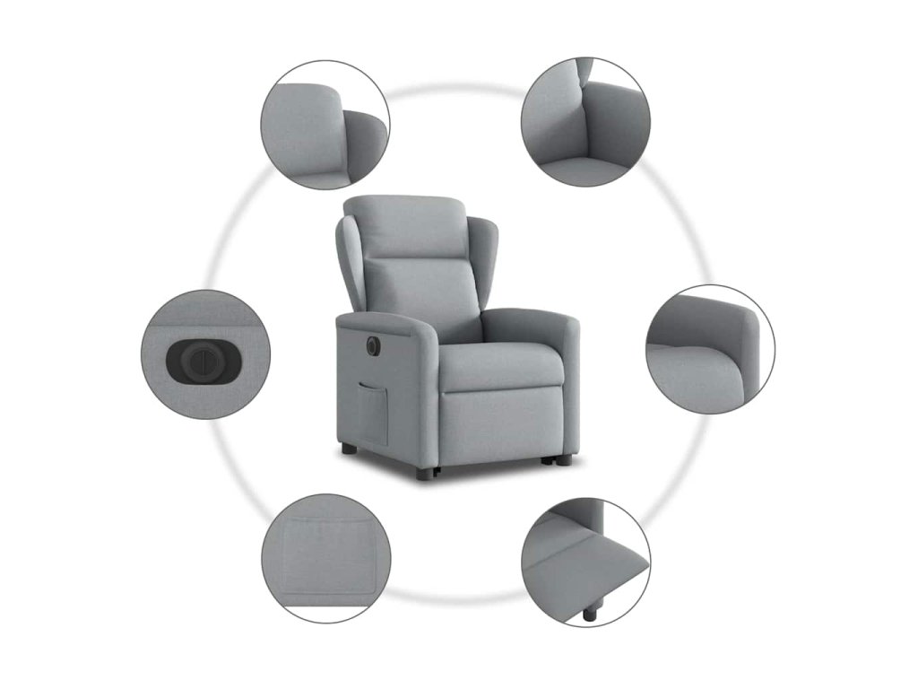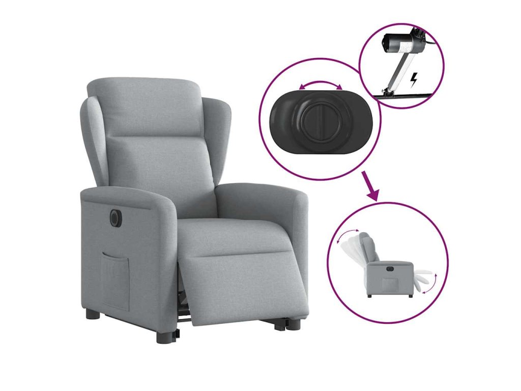- Funkce elektrického sklápění: Toto polohovací křeslo je také vybaveno elektromotorem. Jednoduchým stisknutím tlačítka na boku křesla můžete automaticky nastavit opěrku nohou a opěradlo do libovolné polohy tak, abyste se cítili pohodlně. Tato funkce umožňuje maximální náklon 135 stupňů. Opěradlo se navíc může jednoduchým stisknutím tlačítka automaticky vrátit do původní polohy.