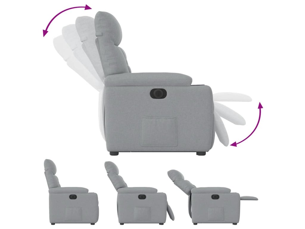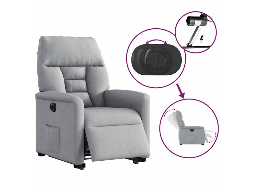 - Funkce elektrického sklápění: Toto polohovací křeslo je také vybaveno elektromotorem. Jednoduchým stisknutím tlačítka na boku křesla můžete automaticky nastavit opěrku nohou a opěradlo do libovolné polohy tak, abyste se cítili pohodlně. Tato funkce umožňuje maximální náklon 135 stupňů. Opěradlo se navíc může jednoduchým stisknutím tlačítka automaticky vrátit do původní polohy.
