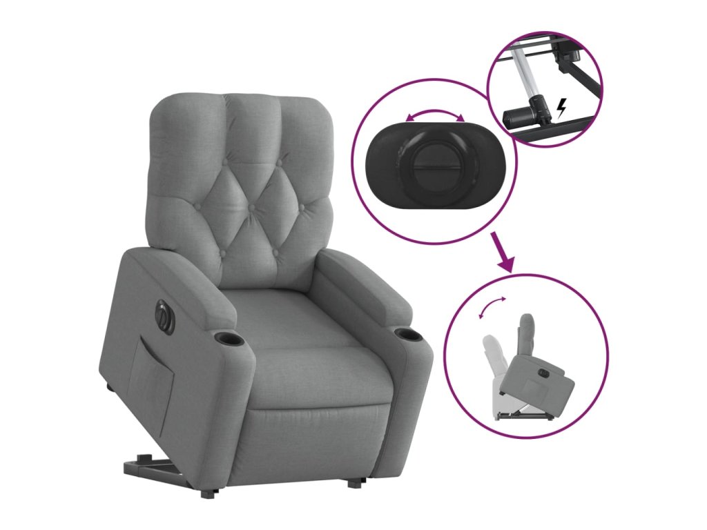 - Funkce sklápění: Toto polohovací křeslo pro seniory je vybaveno elektromotorem pro jeho zvedání. Vzhledem k funkci zvedání, která tlačí celé křeslo nahoru, můžete snadno vstát, aniž byste zatěžovali záda a kolena.