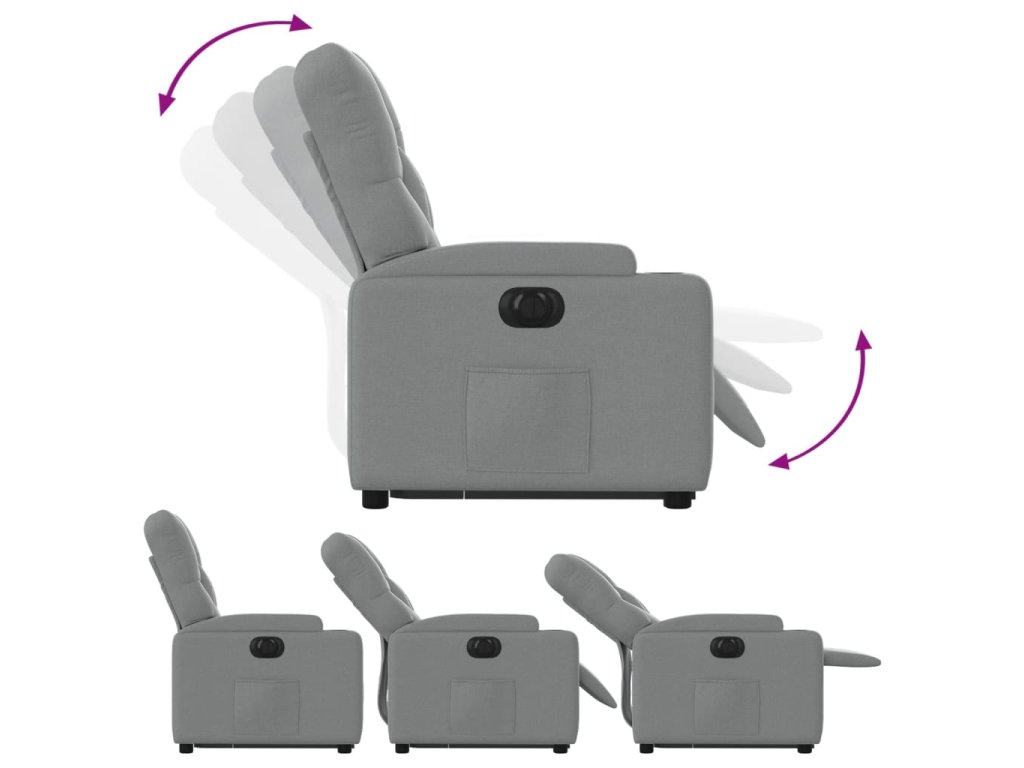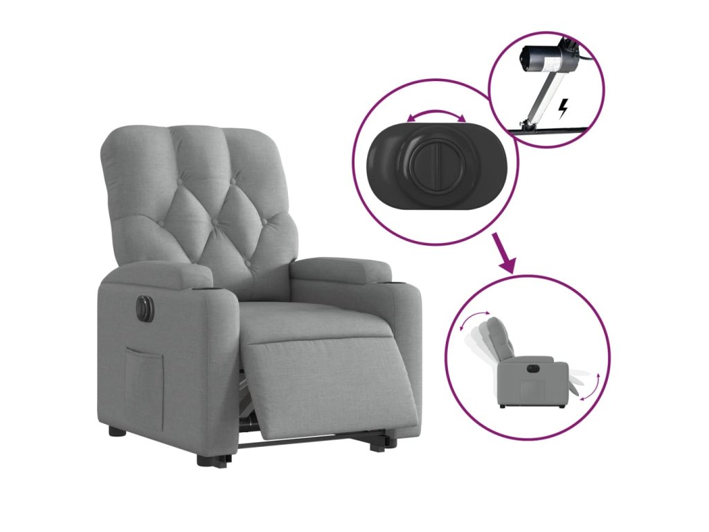 - Funkce elektrického sklápění: Toto polohovací křeslo je také vybaveno elektromotorem. Jednoduchým stisknutím tlačítka na boku křesla můžete automaticky nastavit opěrku nohou a opěradlo do libovolné polohy tak, abyste se cítili pohodlně. Tato funkce umožňuje maximální náklon 135 stupňů. Opěradlo se navíc může jednoduchým stisknutím tlačítka automaticky vrátit do původní polohy.