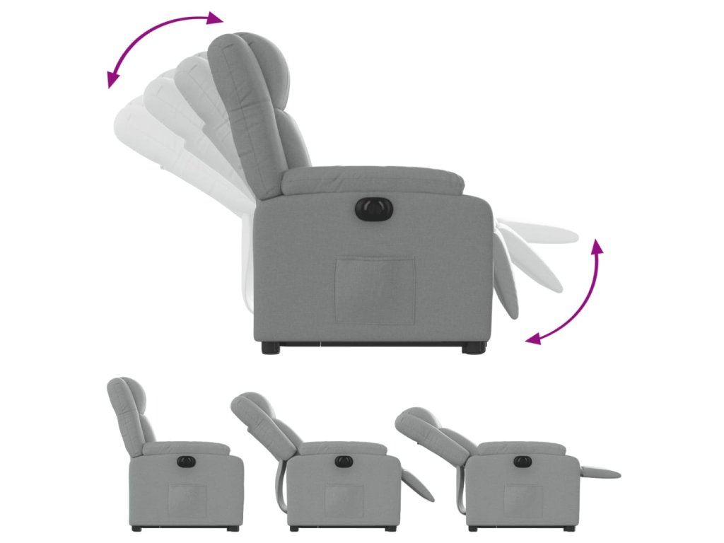 - Funkce elektrického sklápění: Toto polohovací křeslo je také vybaveno elektromotorem. Jednoduchým stisknutím tlačítka na boku křesla můžete automaticky nastavit opěrku nohou a opěradlo do libovolné polohy tak, abyste se cítili pohodlně. Tato funkce umožňuje maximální náklon 135 stupňů. Opěradlo se navíc může jednoduchým stisknutím tlačítka automaticky vrátit do původní polohy.
