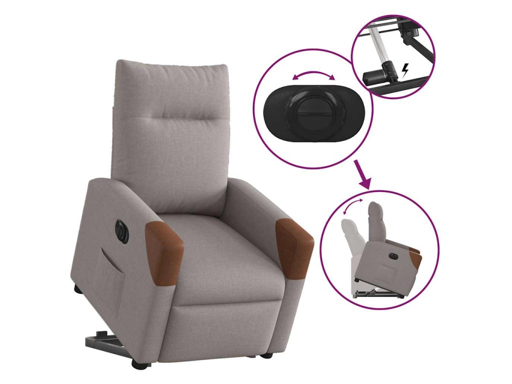 - Funkce elektrického sklápění: Toto polohovací křeslo je také vybaveno elektromotorem. Jednoduchým stisknutím tlačítka na boku křesla můžete automaticky nastavit opěrku nohou a opěradlo do libovolné polohy tak, abyste se cítili pohodlně. Tato funkce umožňuje maximální náklon 135 stupňů. Opěradlo se navíc může jednoduchým stisknutím tlačítka automaticky vrátit do původní polohy.