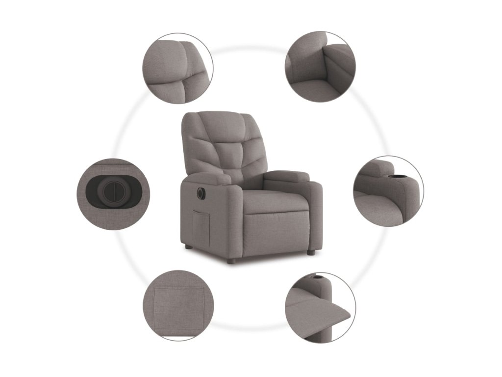 - Funkce elektrického sklápění: Toto polohovací křeslo je také vybaveno elektromotorem. Jednoduchým stisknutím tlačítka na boku křesla můžete automaticky nastavit opěrku nohou a opěradlo do libovolné polohy tak, abyste se cítili pohodlně. Tato funkce umožňuje maximální náklon 135 stupňů. Opěradlo se navíc může jednoduchým stisknutím tlačítka automaticky vrátit do původní polohy.