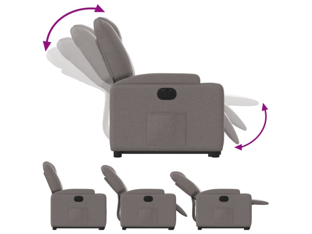 - Funkce elektrického sklápění: Toto polohovací křeslo je také vybaveno elektromotorem. Jednoduchým stisknutím tlačítka na boku křesla můžete automaticky nastavit opěrku nohou a opěradlo do libovolné polohy tak, abyste se cítili pohodlně. Tato funkce umožňuje maximální náklon 135 stupňů. Opěradlo se navíc může jednoduchým stisknutím tlačítka automaticky vrátit do původní polohy.